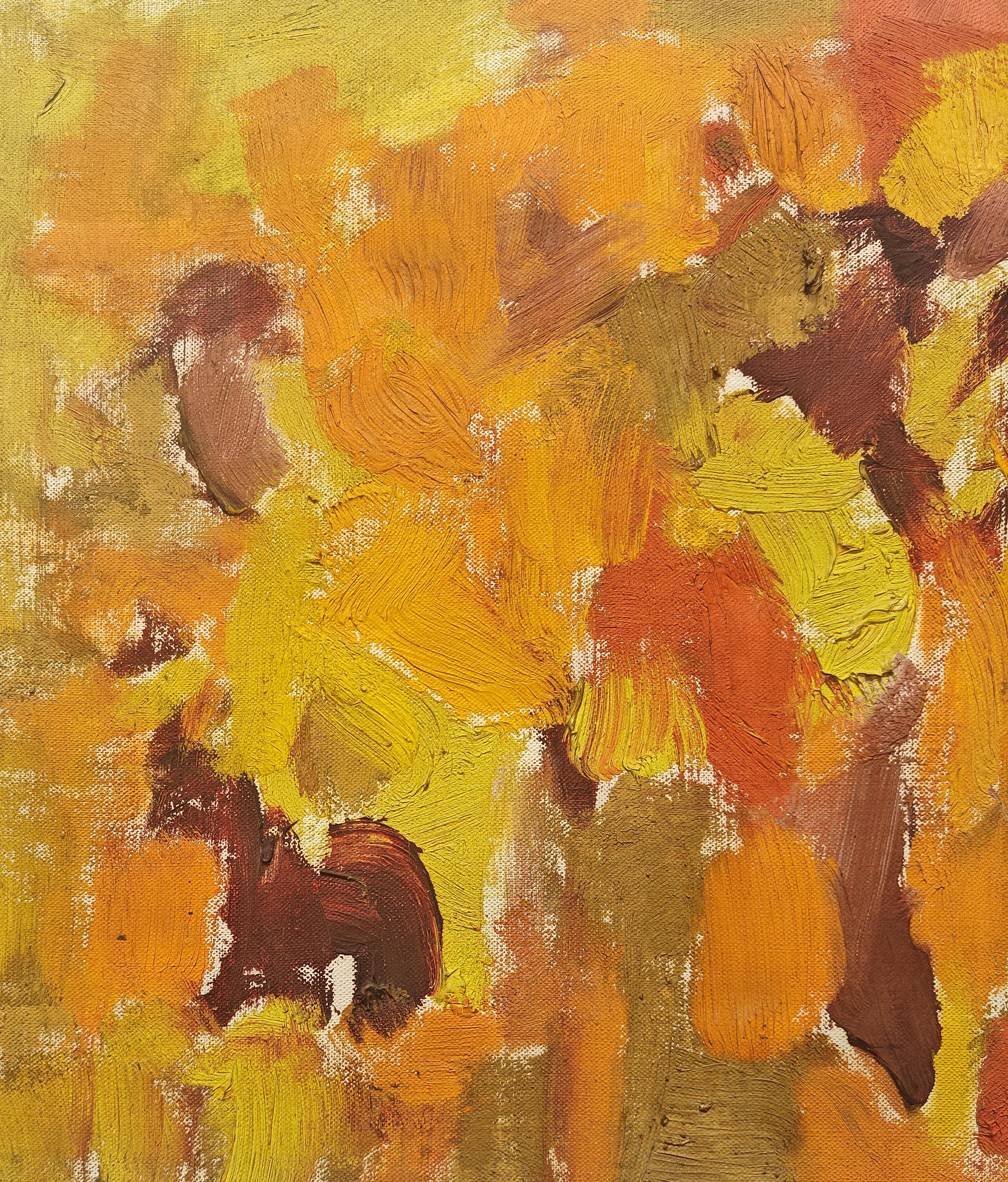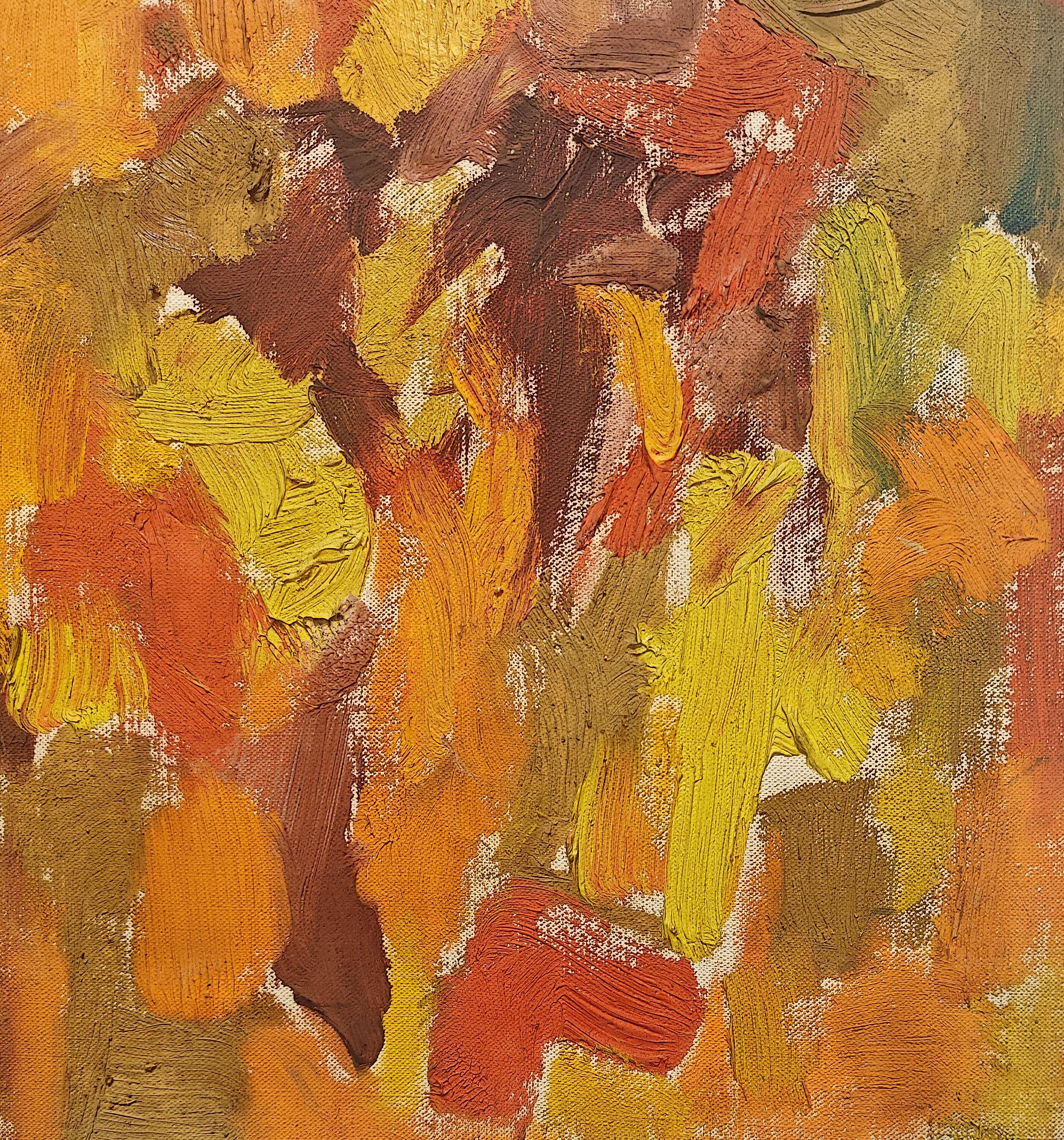 Unbekannter Künstler - Herbstpalette, Jahr: 1959, Medium: Öl auf Leinwand, verso mit Bleistift signiert, betitelt und datiert, Größe: 39,37 x 24,77 cm (15,5 x 9,75 in.), Beschreibu...