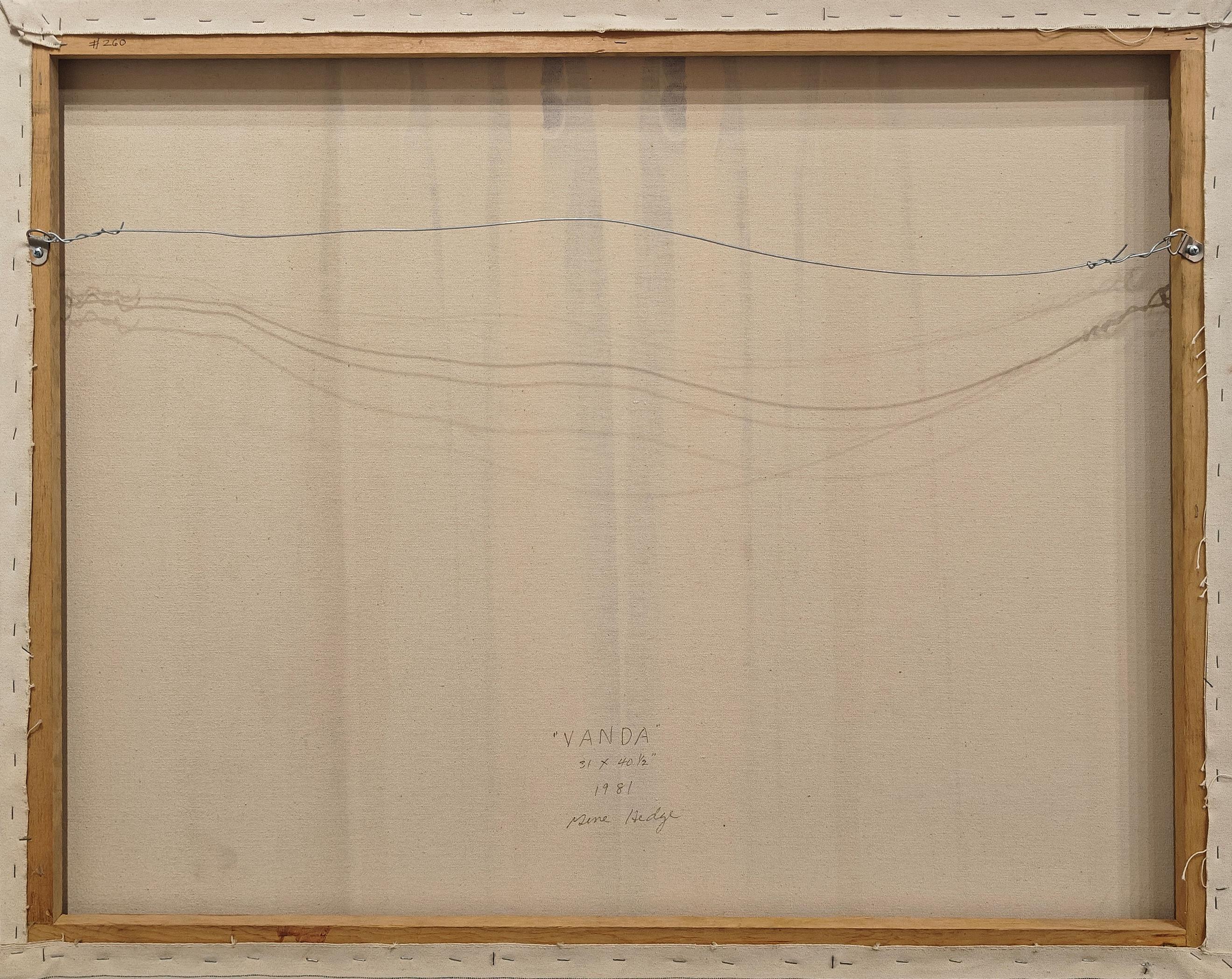 Rückseitig signiert, datiert, betitelt und bezeichnet "'VANDA' 31 X 40 1/2' 1981 Gene Hedge".
