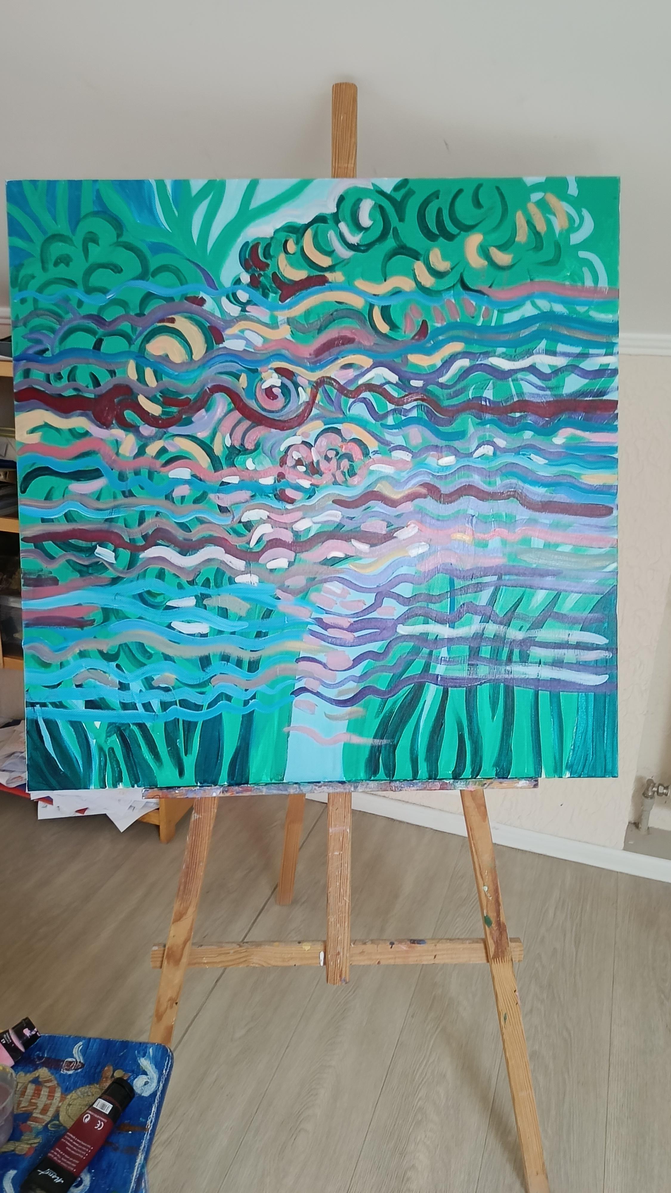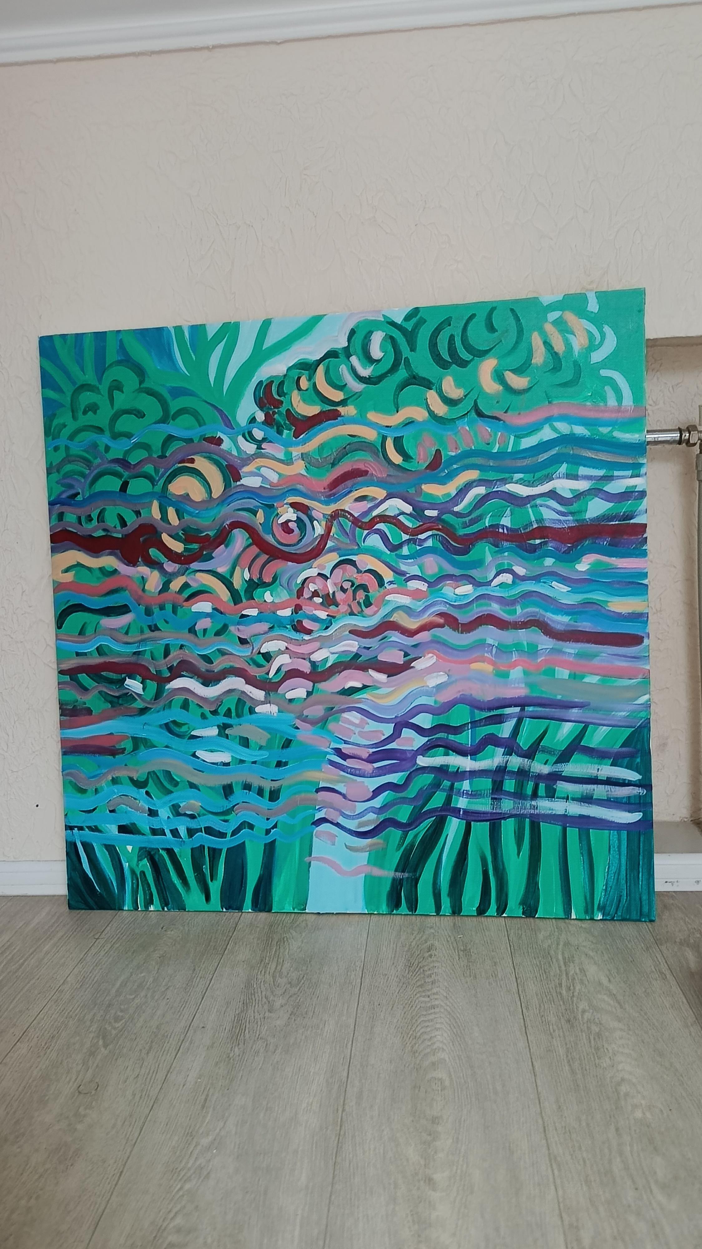 Bei der Gestaltung dieses Werks habe ich mich mit kühnen Strichen und kontrastierenden Schichten in den spürbaren Fluss der Gefühle gewagt. Mit Acrylfarben habe ich eine Landschaft d...