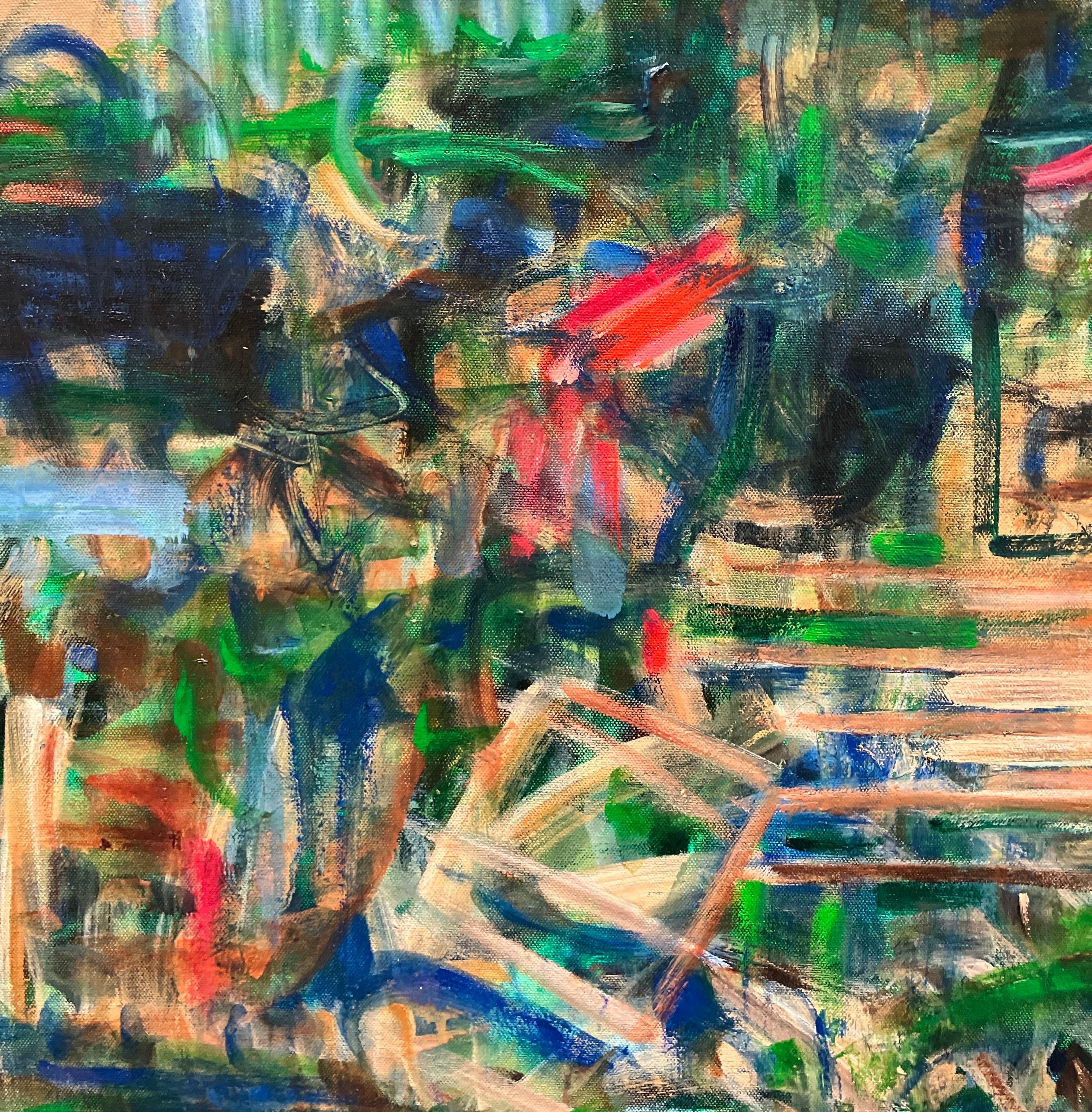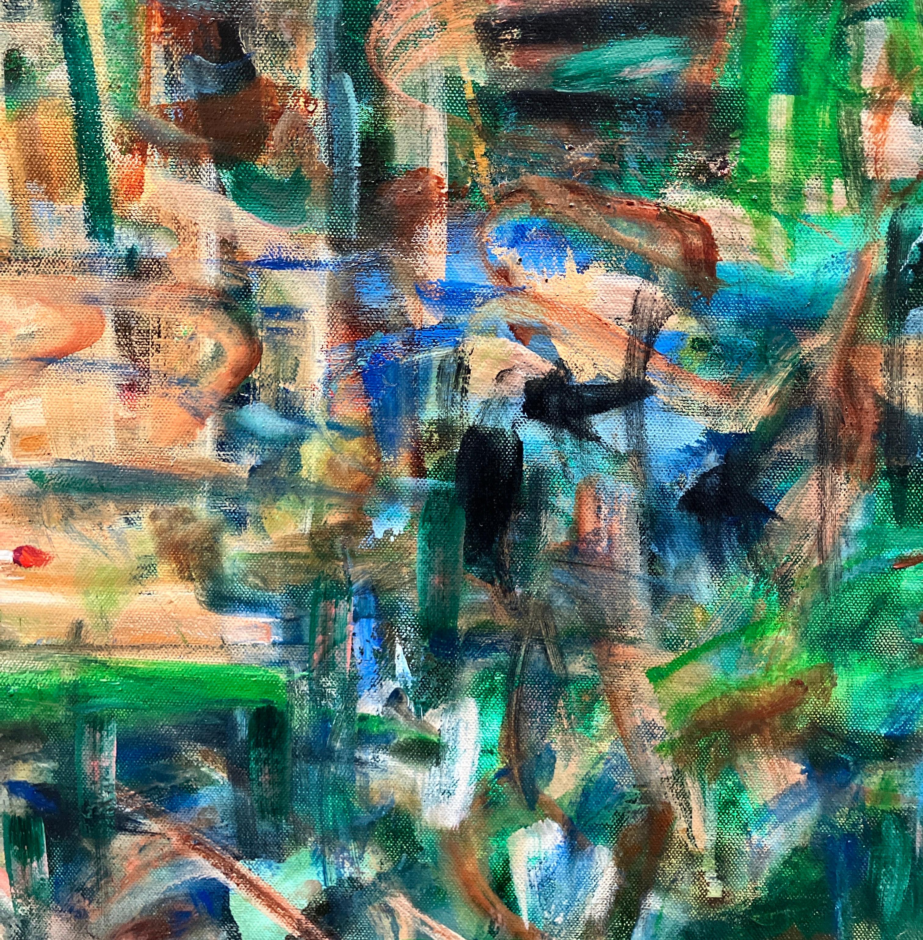 „After Urbana #3“, farbenfrohes abstraktes Ölgemälde auf Leinwand