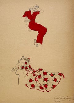 1930er Moderne Figurative Zeichnungen und Aquarelle