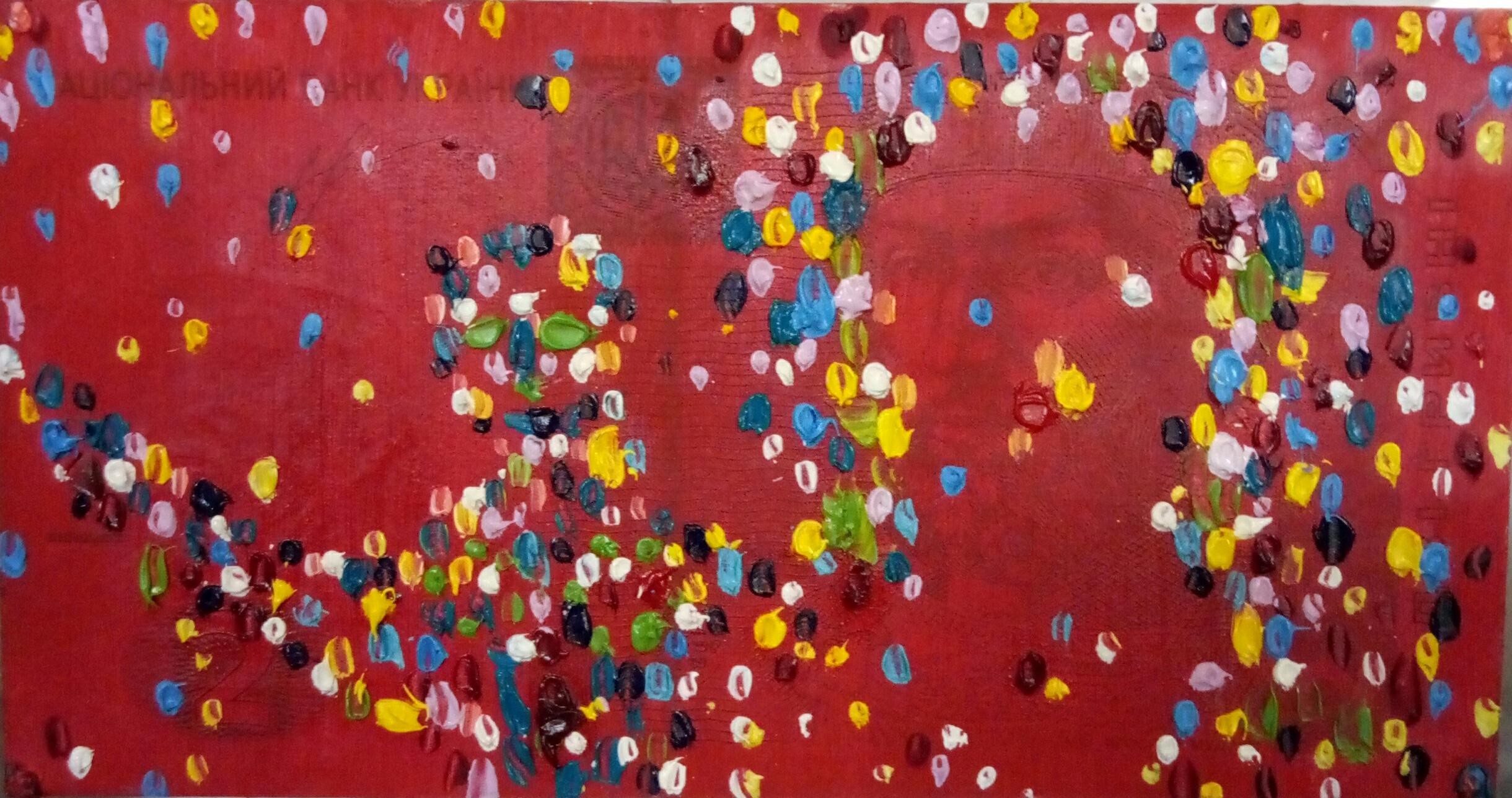 Das Bild ist auf Geld gemalt. Sie steht für eine neue Richtung in der Weltkunst. Diese Richtung ist in 40 Ländern vertreten. Meine Bilder befinden sich in Museumssammlungen auf der g...