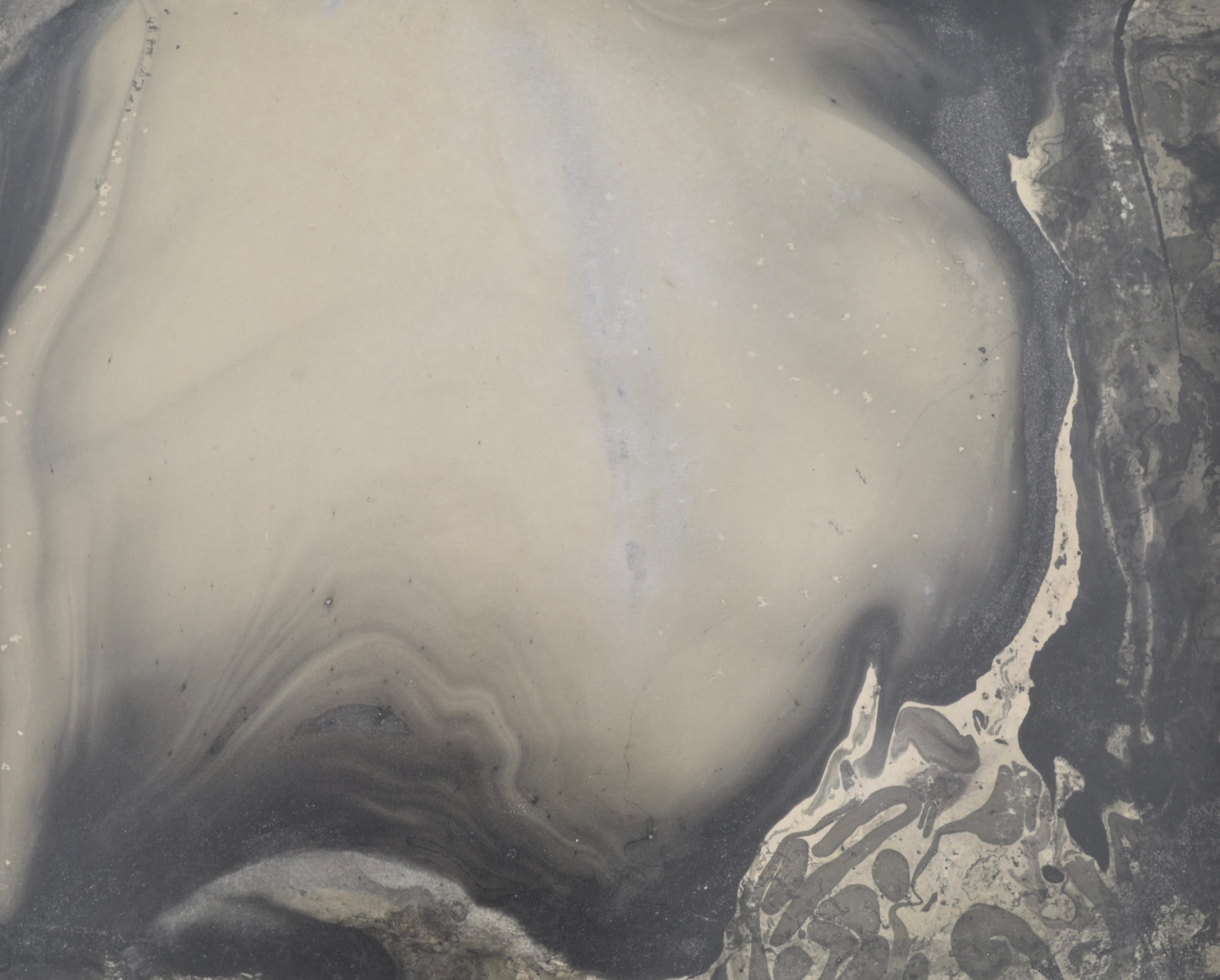 Großes abstraktes Werk auf Papier in Mischtechnik mit Tusche und Farbe von Nicole Noailles Lascaux (1926-2021), Pariser Künstlerin. In seinem ursprünglichen Rahmen.