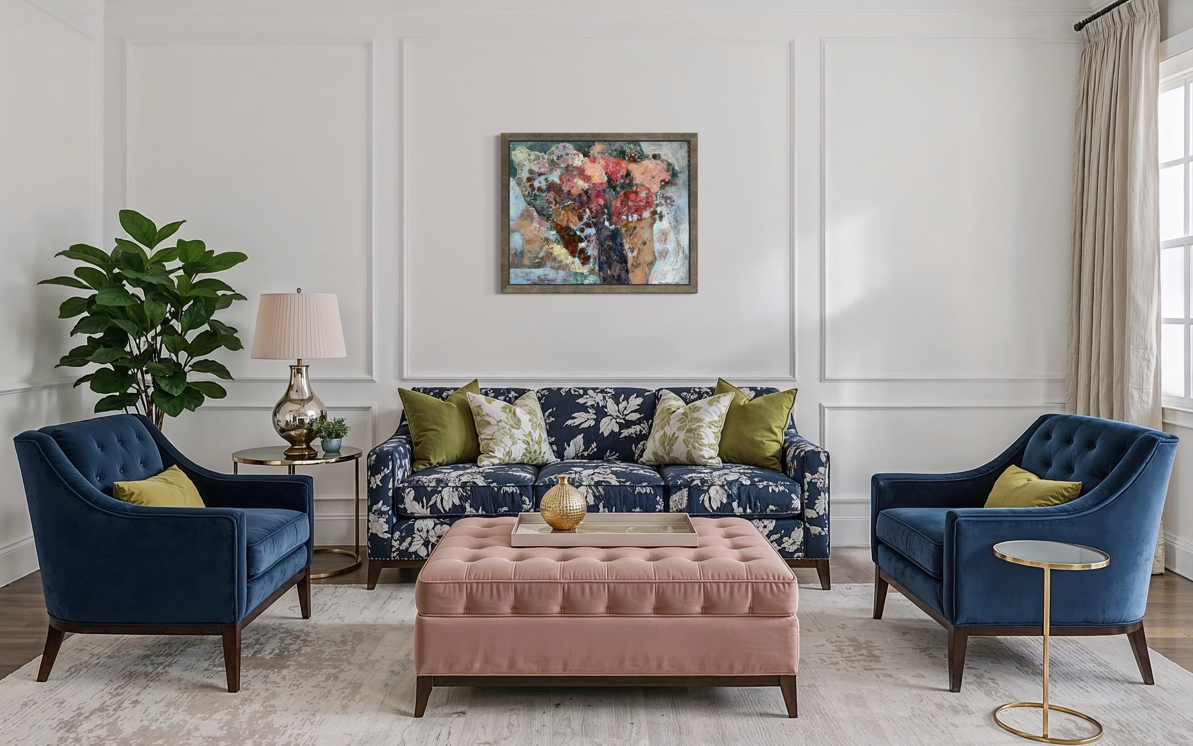 „Flower Jazz“ Original Blumenkomposition .Großes Ölgemälde . Inneneinrichtung