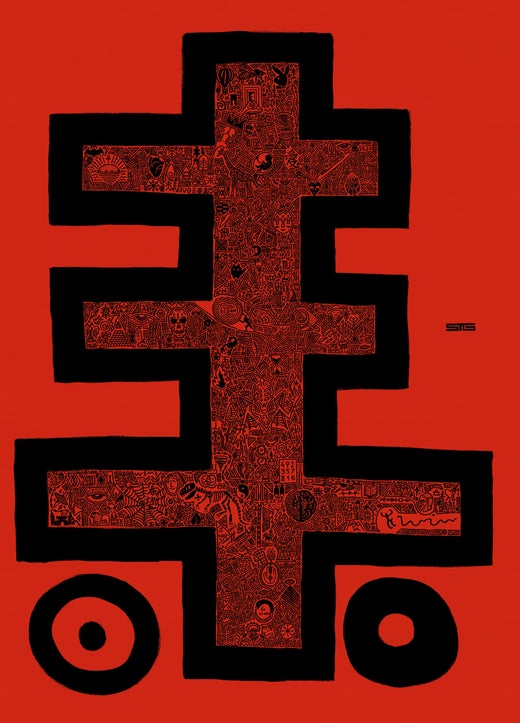 Signature ist eine dunkle und mystische Leinwand in Rot- und Schwarztönen. Pyramiden, Zahlen, Kreuze und okkulte Symbole verflechten sich mit dämonischen Gesichtern und schaffen eine...