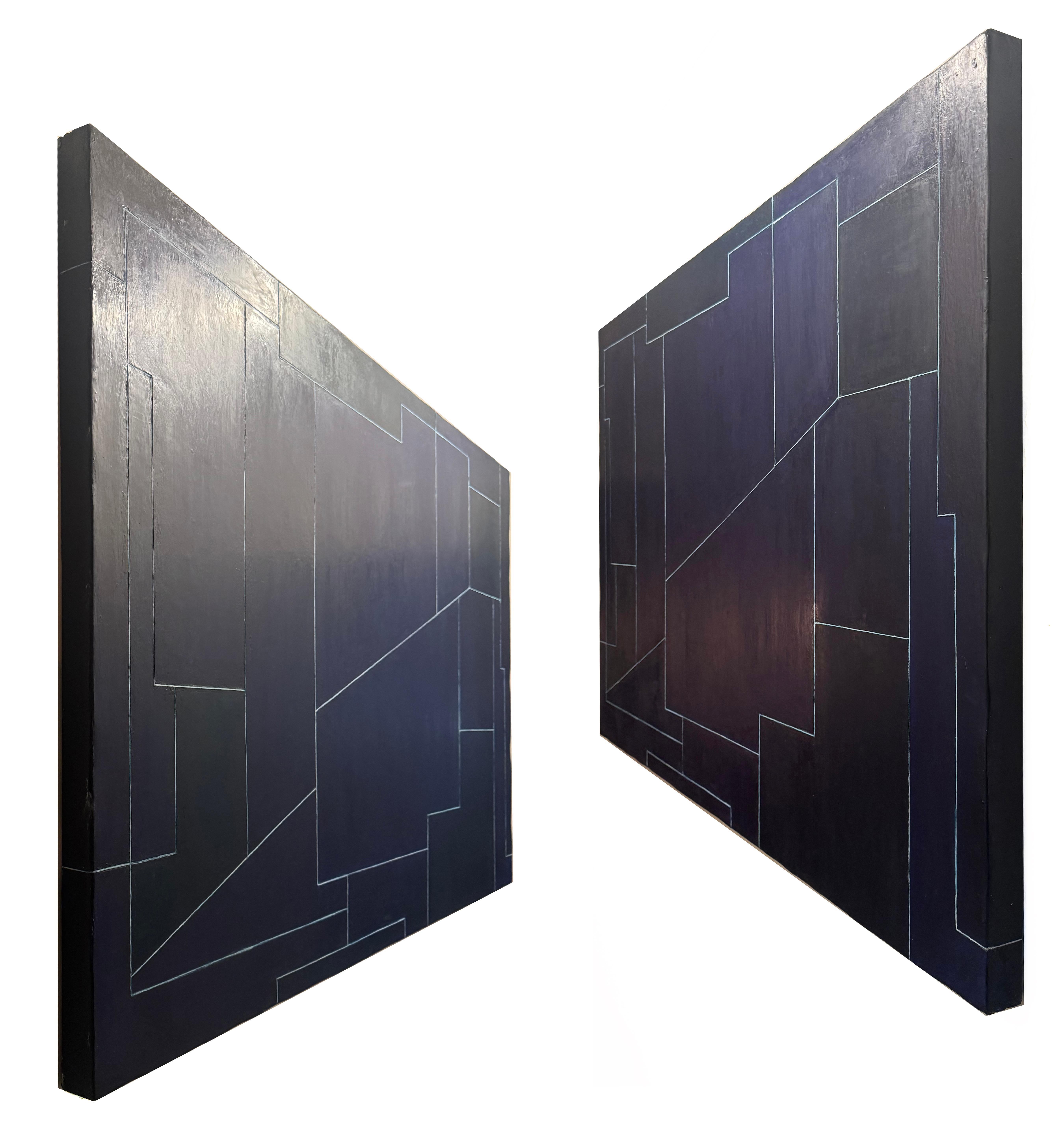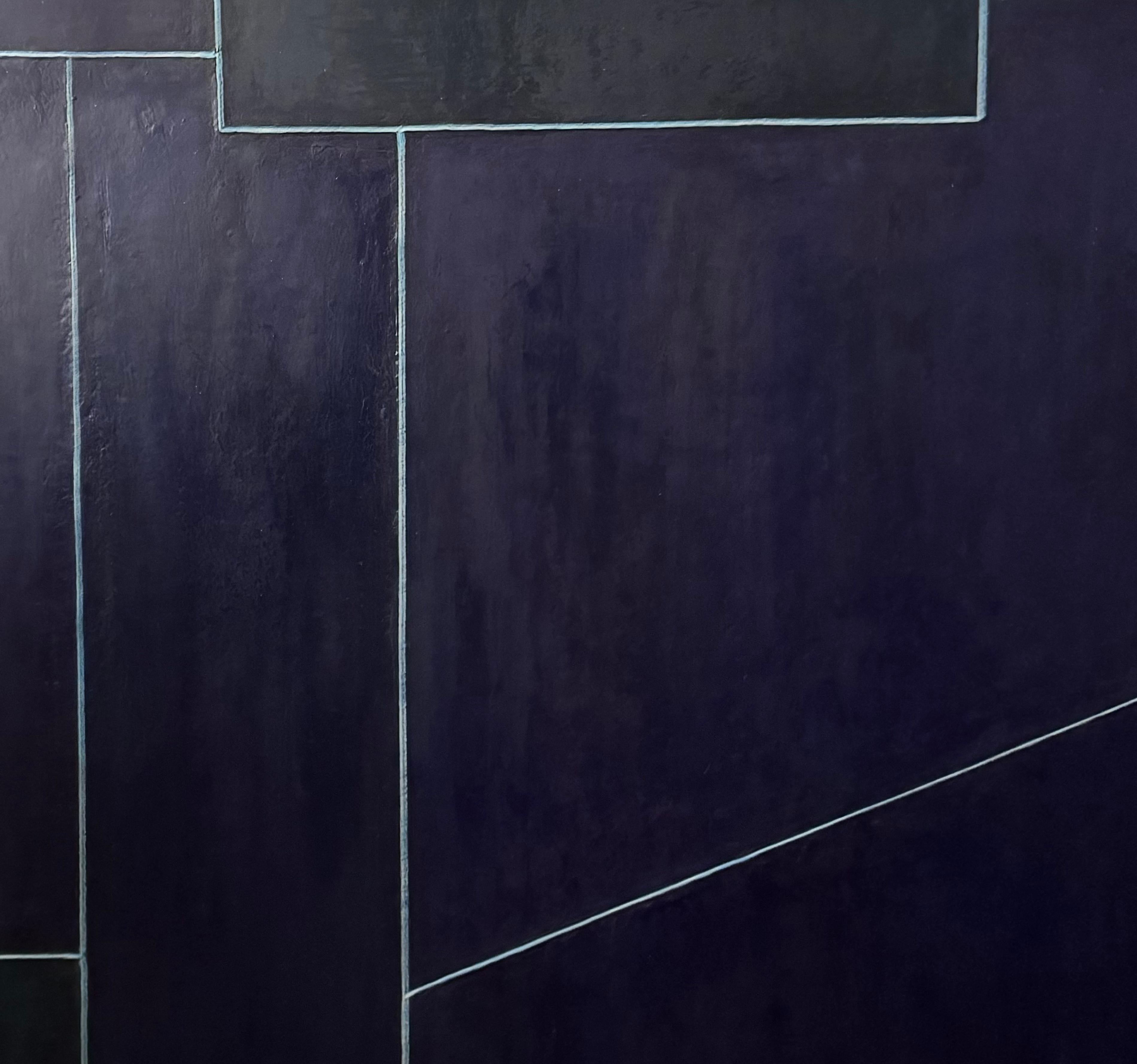 Ausgehend von den architektonischen Ursprüngen seines bisherigen Werks betrachtet diese Serie abstrakter Ölgemälde geometrische Räume und ihre Beziehungen zueinander. Mit Ölfarbe, Wachsmedium und Marmorstaub auf Leinwand schafft der Künstler ein harmonisches Gleichgewicht auf der Leinwand, das durch strukturierte Farbschattierungen, lineare Linien und Formen gekennzeichnet ist und eine meditative Komposition von Formen und Farben entstehen lässt.