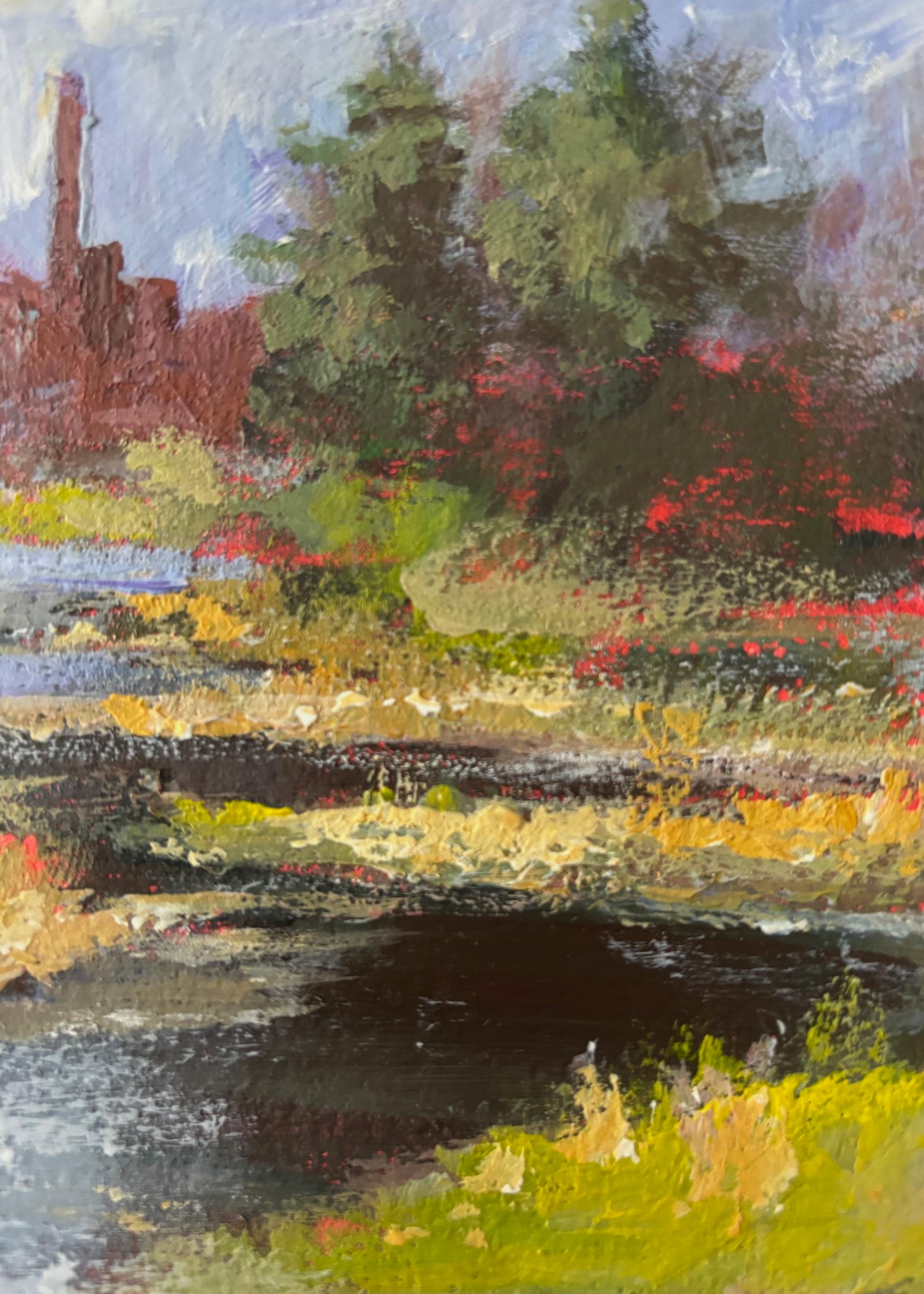 Catherine Picard-Gibbs"Echoes of Riverside Mill", Zeitgenössisch, Rot, Blau, Grün, Acrylmalerei2015