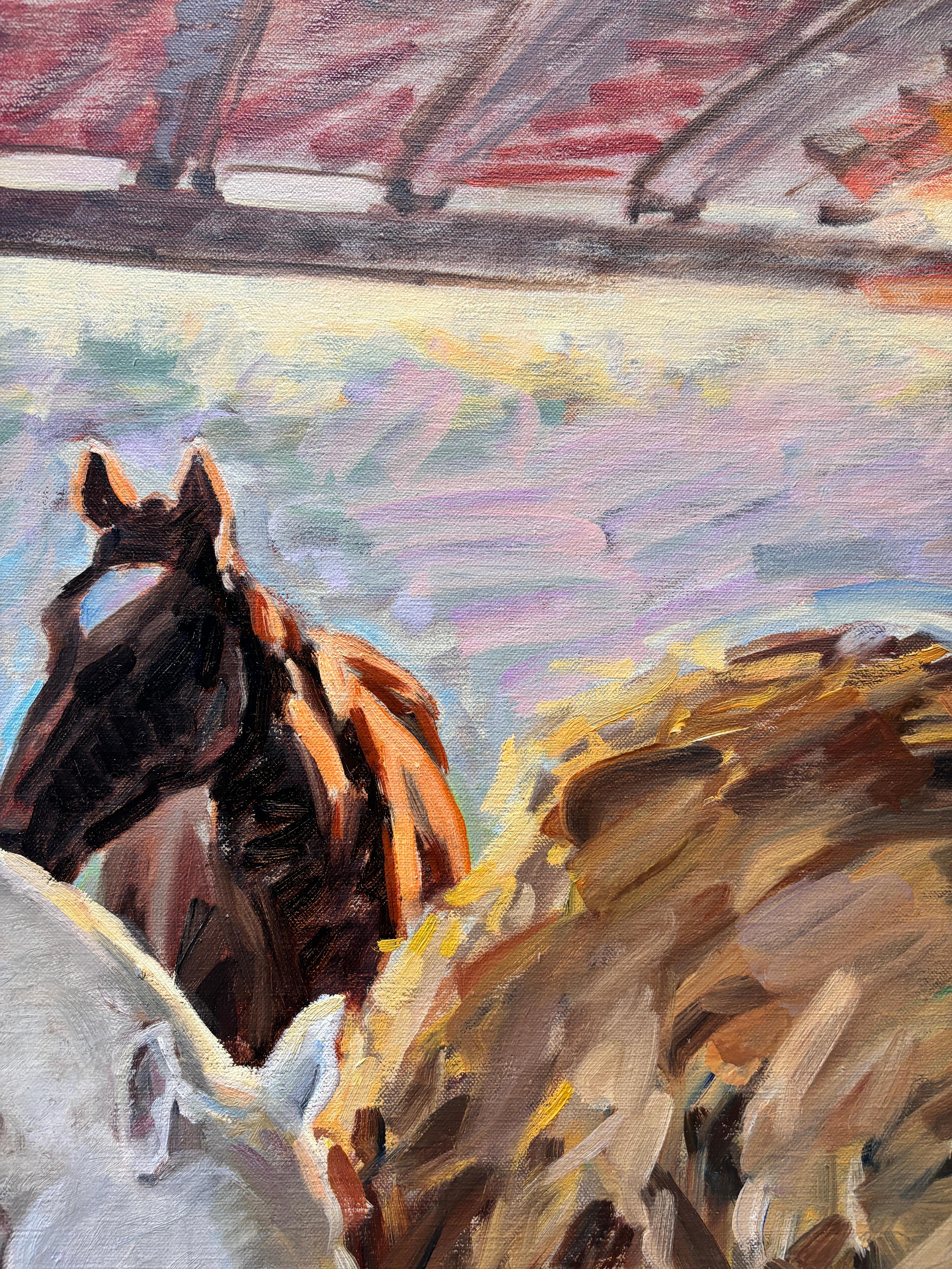 Original Pferd Kunstwerk Öl auf Platte :: Gemälde :: Impressionist :: Dieses Werk wird mit einem offiziellen, vom Künstler unterzeichneten Echtheitszertifikat geliefert :: Bereit zu...
