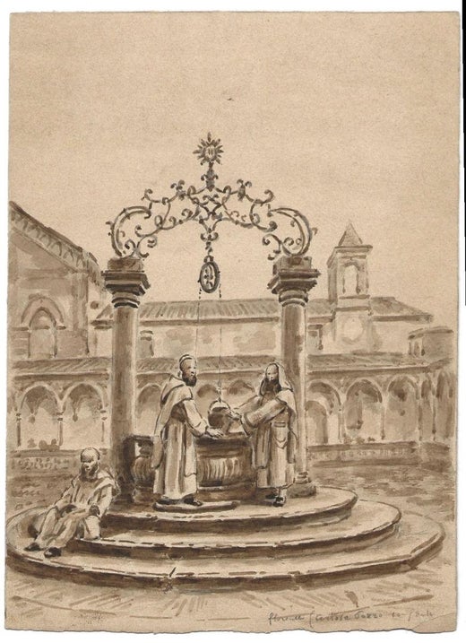 Landschaft ist eine Originalzeichnung mit chinesischer Tinte auf Papier das 1949 von Renzo Vespignani realisiert wurde.