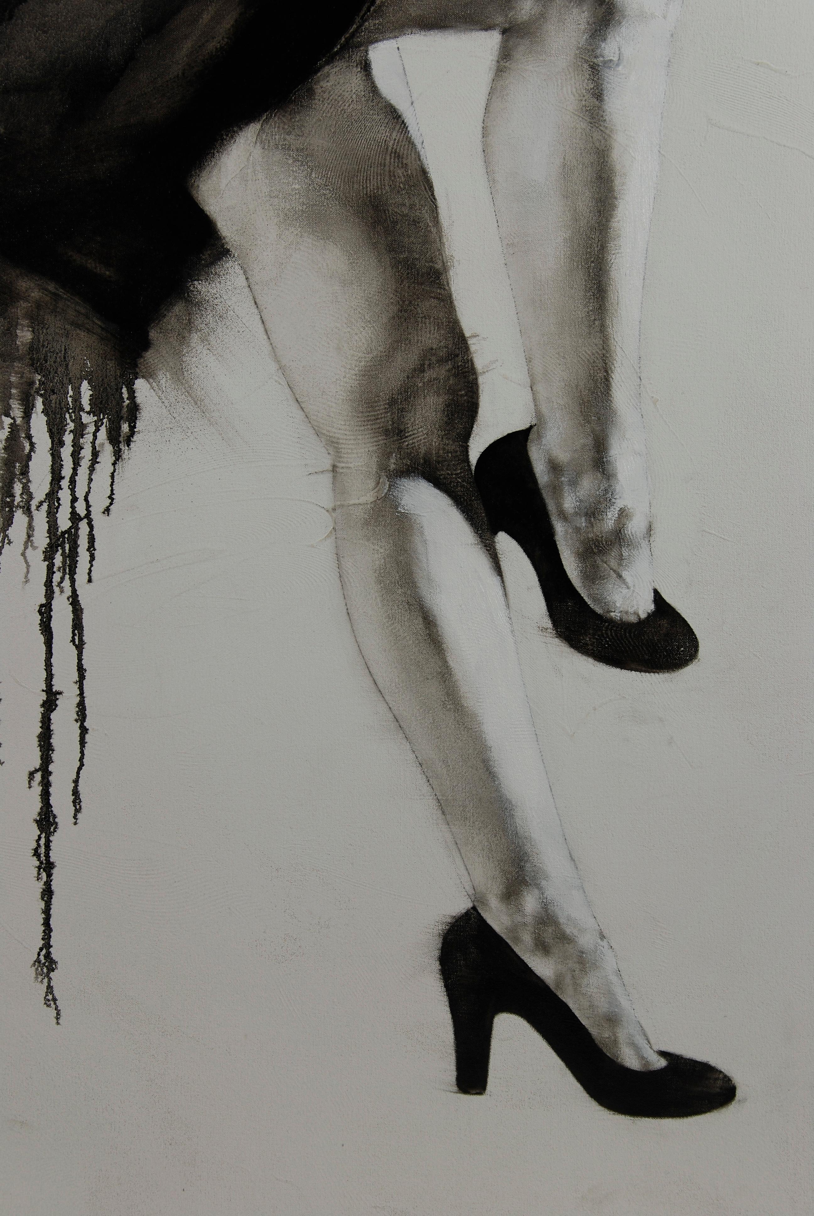 Unapologetic - 60"x30", Kleidgemälde, figurativ, strukturierte Schleife, Schwarz, Beige