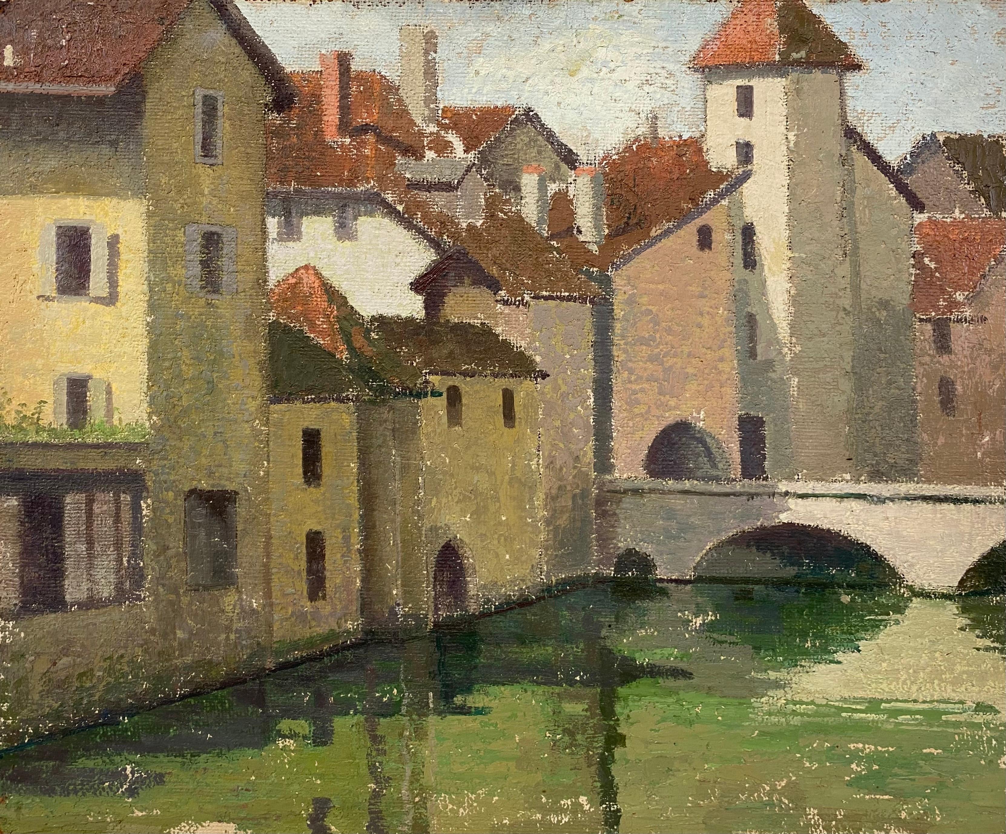 Alfred Chagniot (1905-1991) - 20. Jahrhundert Öl, Townes am Kanal
