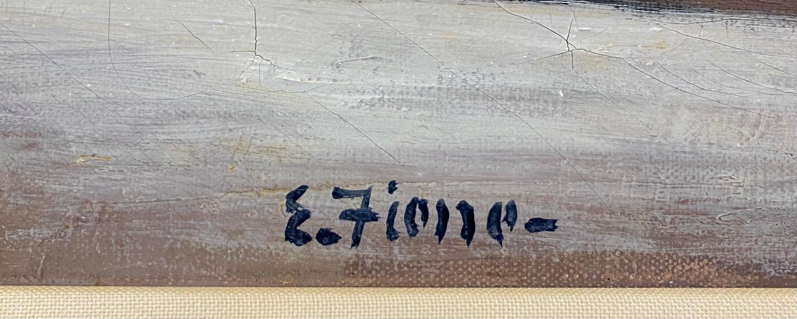Dieses Werk ist in Öl auf Leinwand gemalt und links unten und verso signiert. Sie ist in einem schönen Rahmen im modernistischen Stil untergebracht.