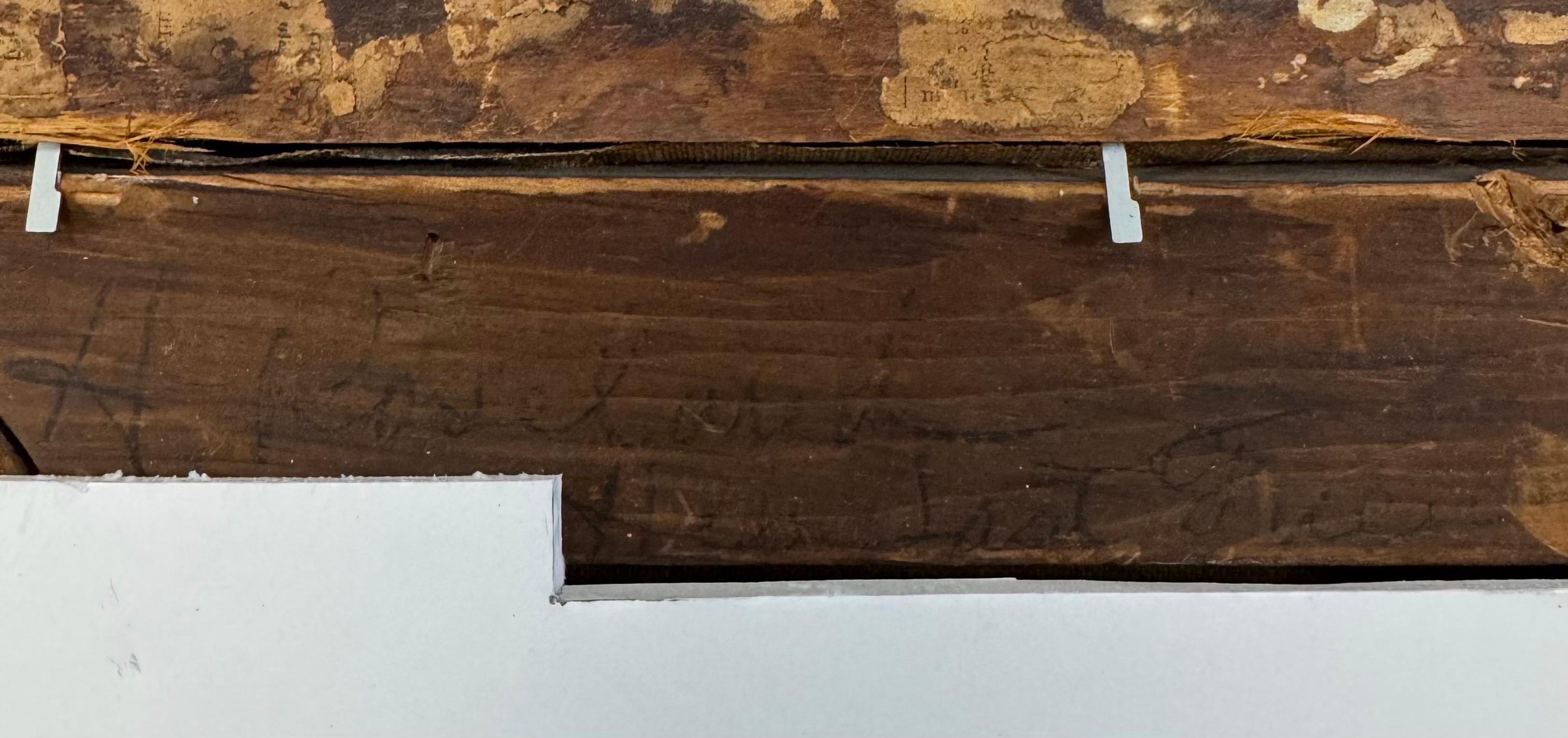 - Zustand:Insgesamt sehr guter Zustand. Kürzlich professionell gereinigt. Schwache Bahreindrücke im Streiflicht sichtbar. Geringfügige Ausbesserungen, um den Rahmenabrieb an den äußersten Rändern zu beseitigen. Antiker Rahmen mit Verlusten, Rissen und Abnutzungserscheinungen an der Oberfläche.