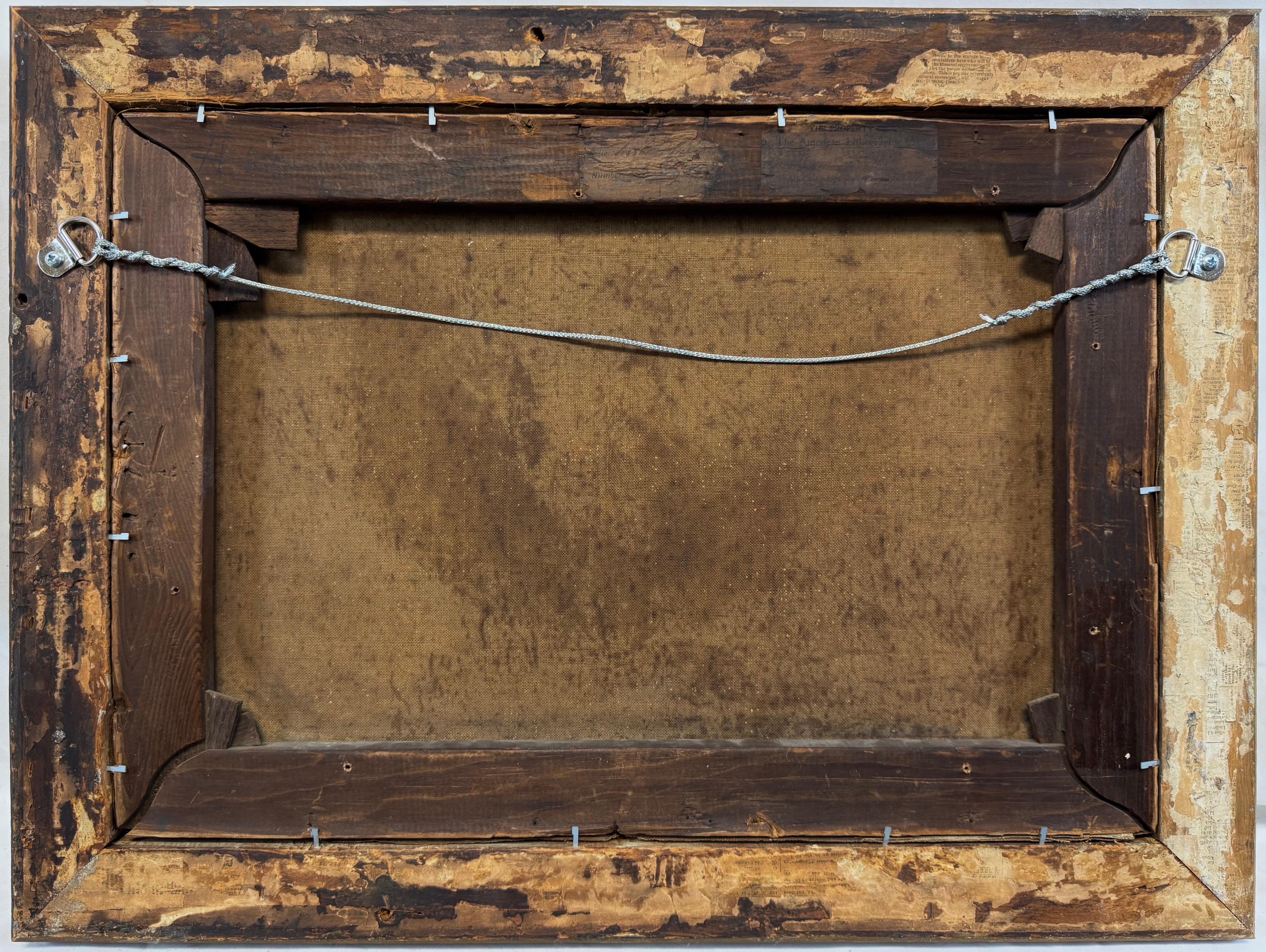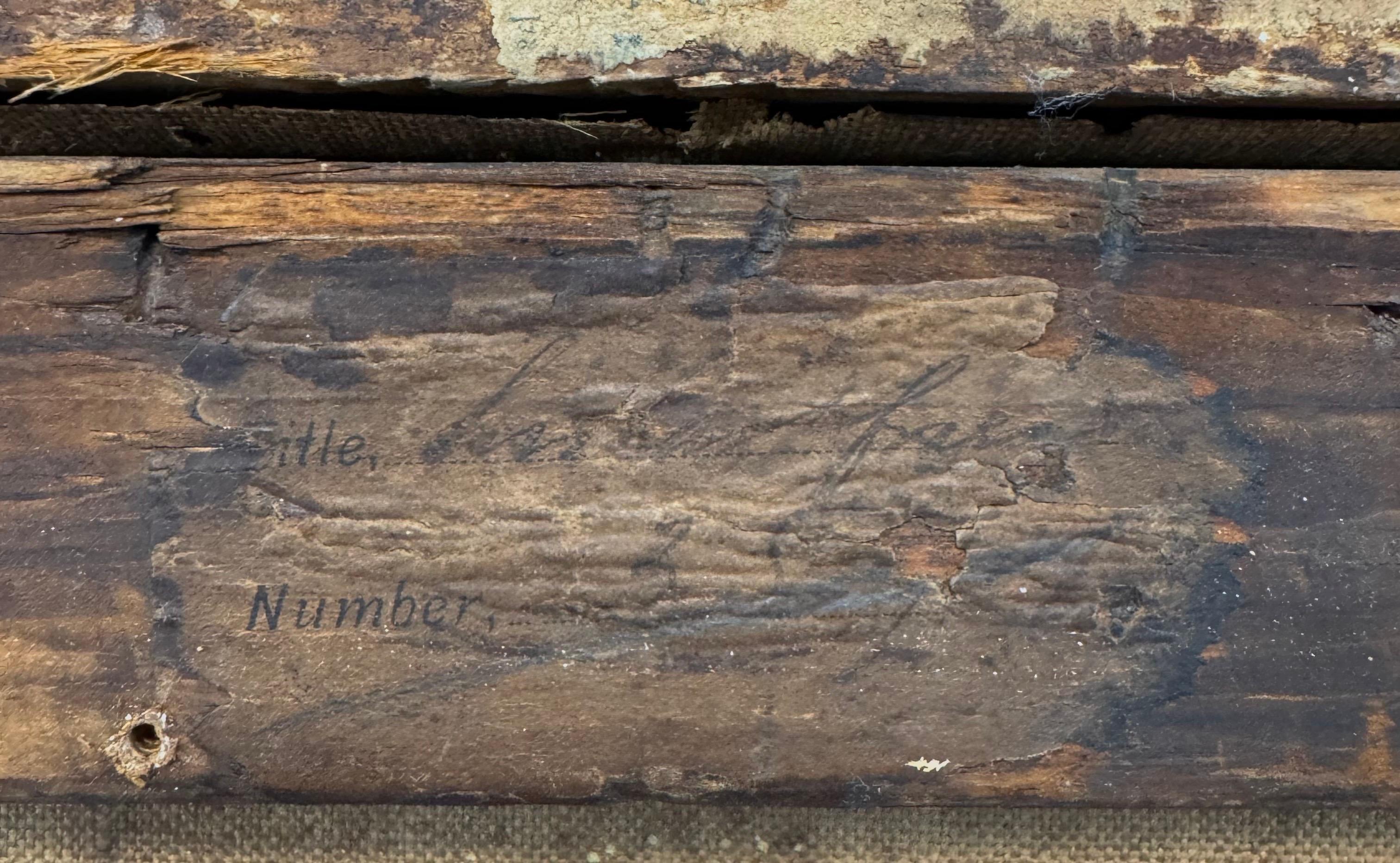Dieses Werk ist in Öl auf Leinwand gemalt und links oben signiert. Es ist in einem antiken Goldrahmen untergebracht. Auf der Rückseite des Keilrahmens befinden sich einige Etiketten aus der Zeit, darunter ein anonymes Ausstellungsetikett und ein weiteres von The American Lithographic Company. Das Werk ist zusätzlich auf dem Keilrahmen mit Bleistift betitelt.
