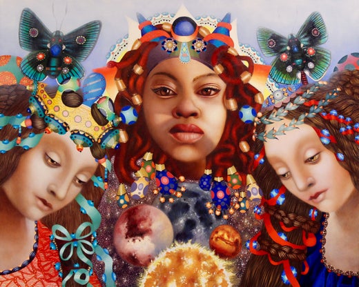 Alle anzeigenTHE VISITATION - Zeitgenössischer Realismus / Weibliches Porträt / Juwelen-Kopfschmuck
