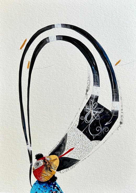 Öl auf Leinwand mit Strasssteinen und Seidenmischtechnik