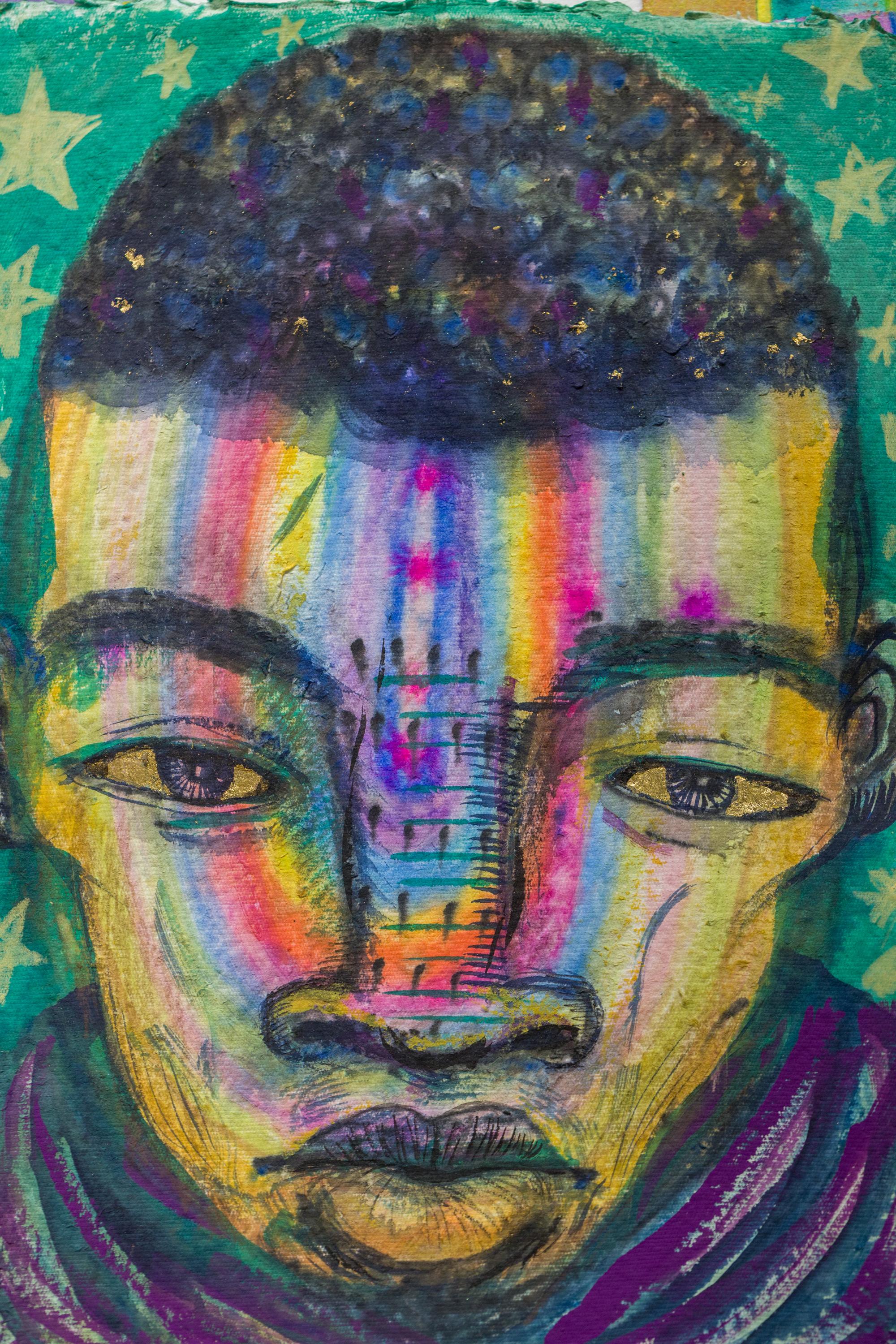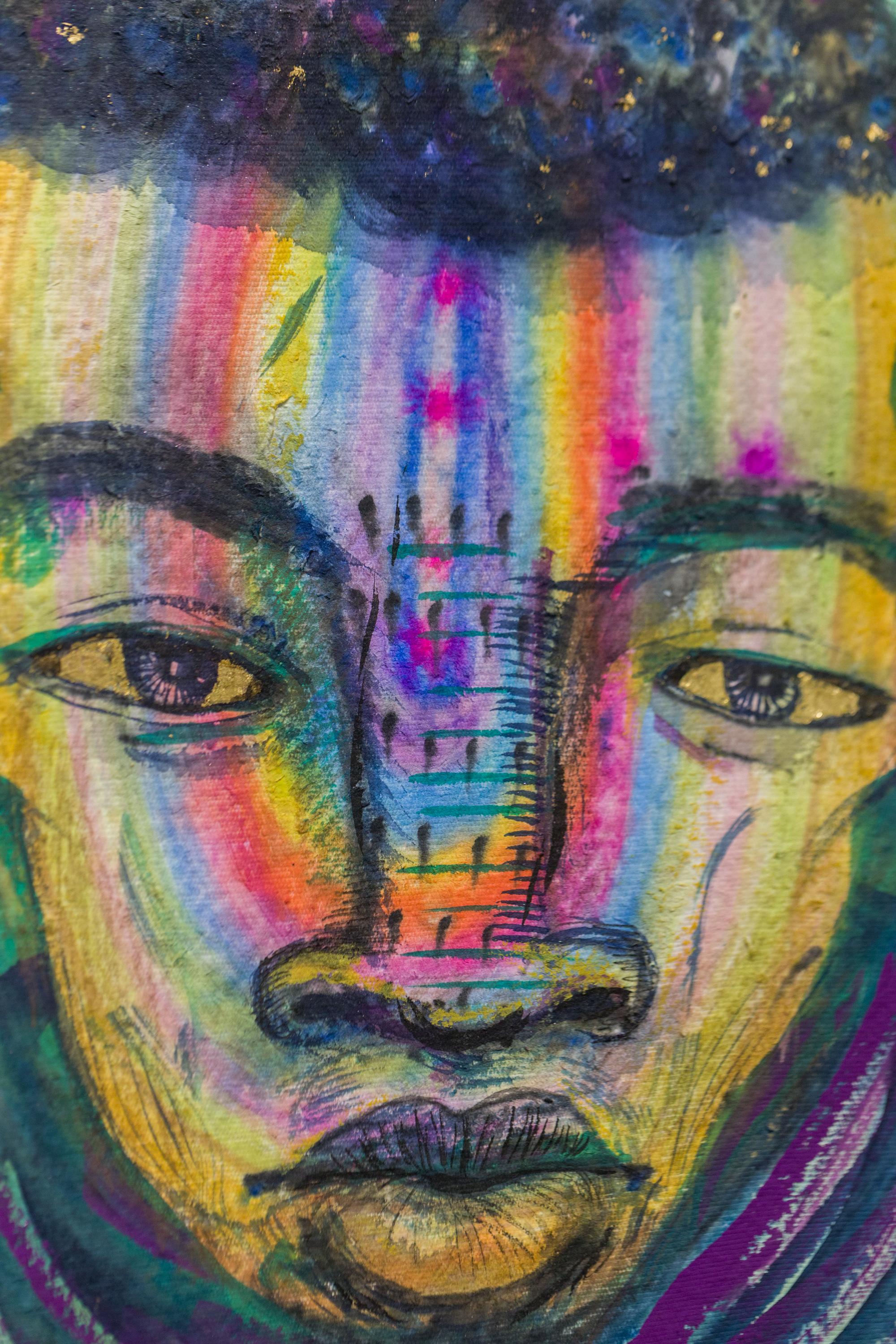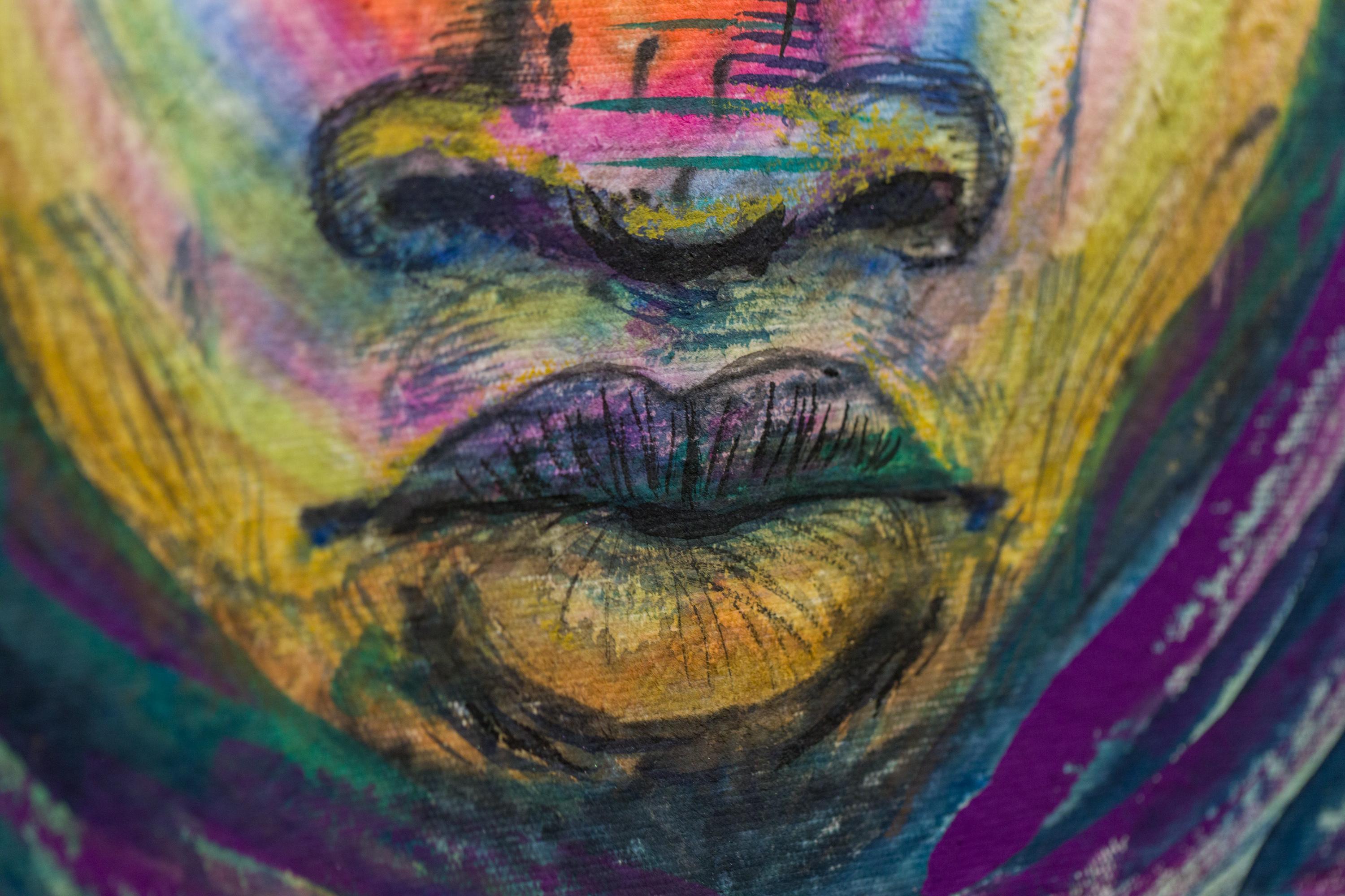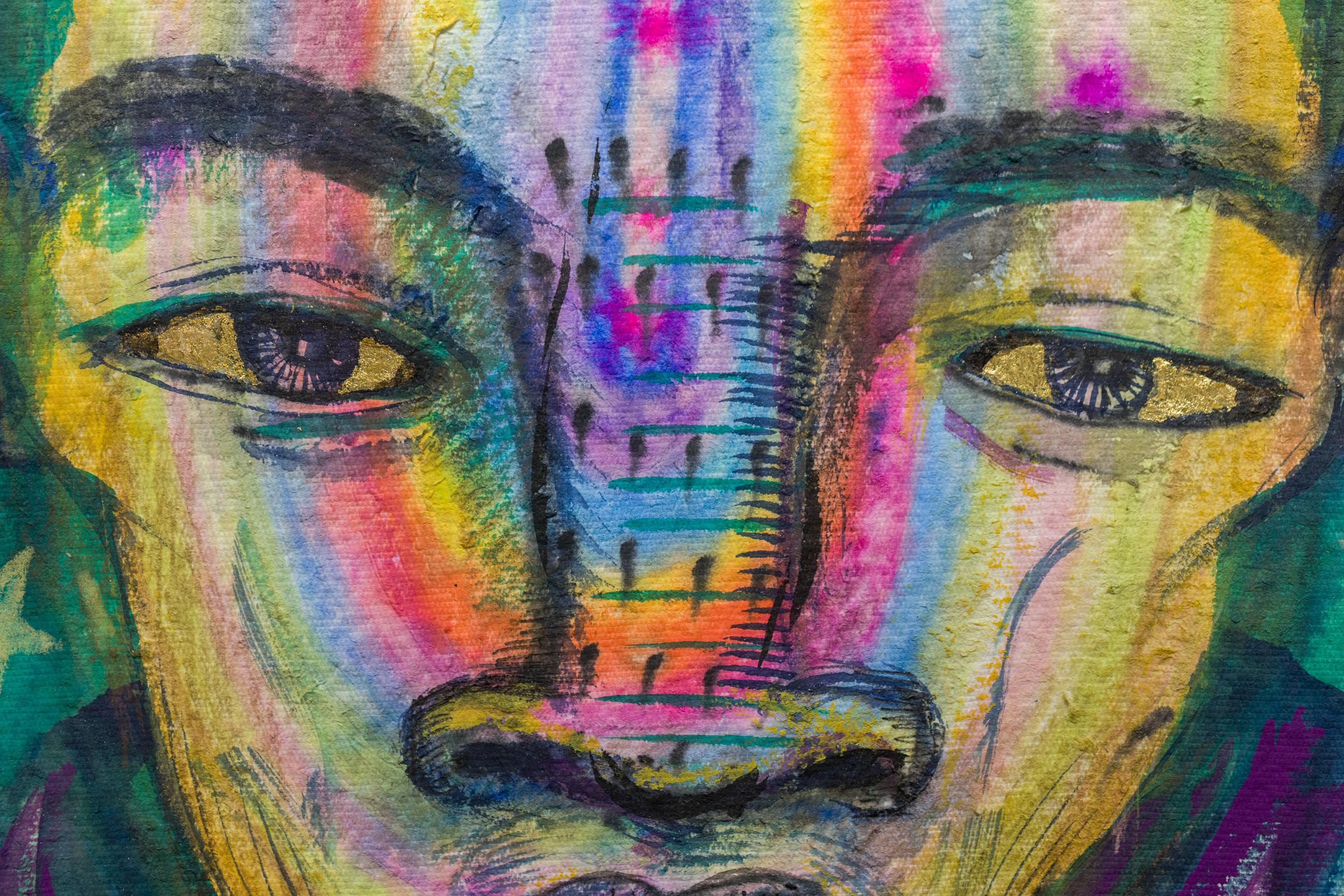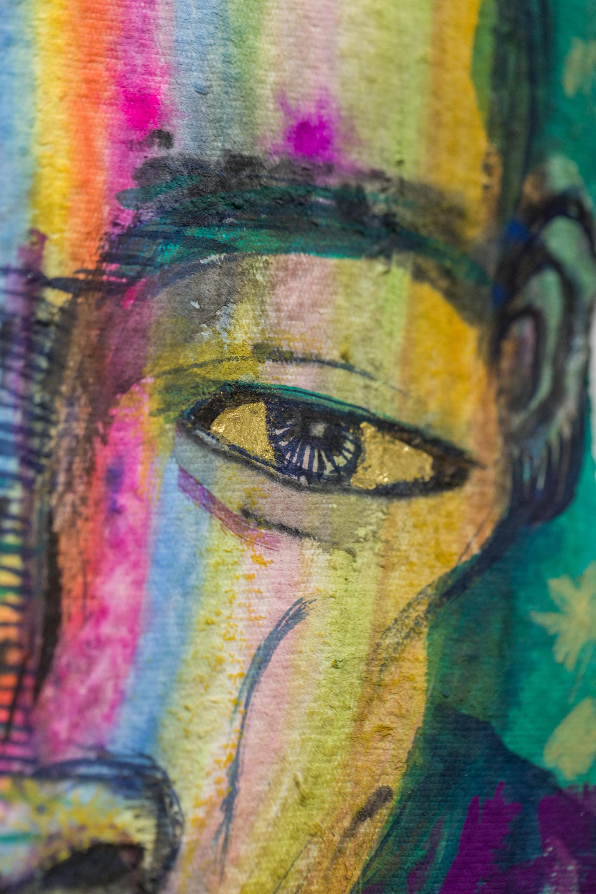 "Pfad zur Freude" Porträt in Tusche, Gouache und Acryl auf Papier mit Büttenrand