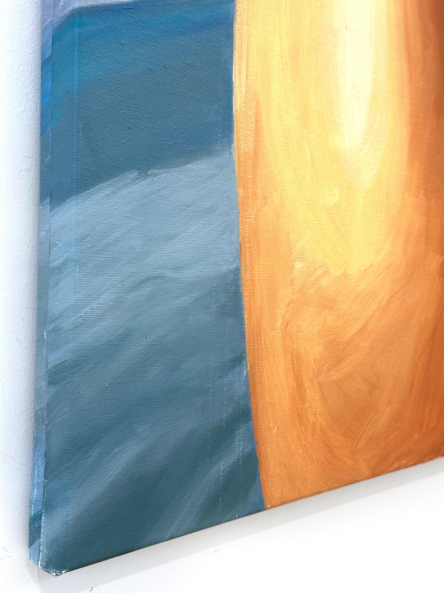 Mit Schichten aus leuchtenden Ölen und wischenden Pinselstrichen kann die Farbe in einem einzigartigen Muster glänzen und schimmern. Die Künstlerin verwendet Goldtropfen, gemischte M...