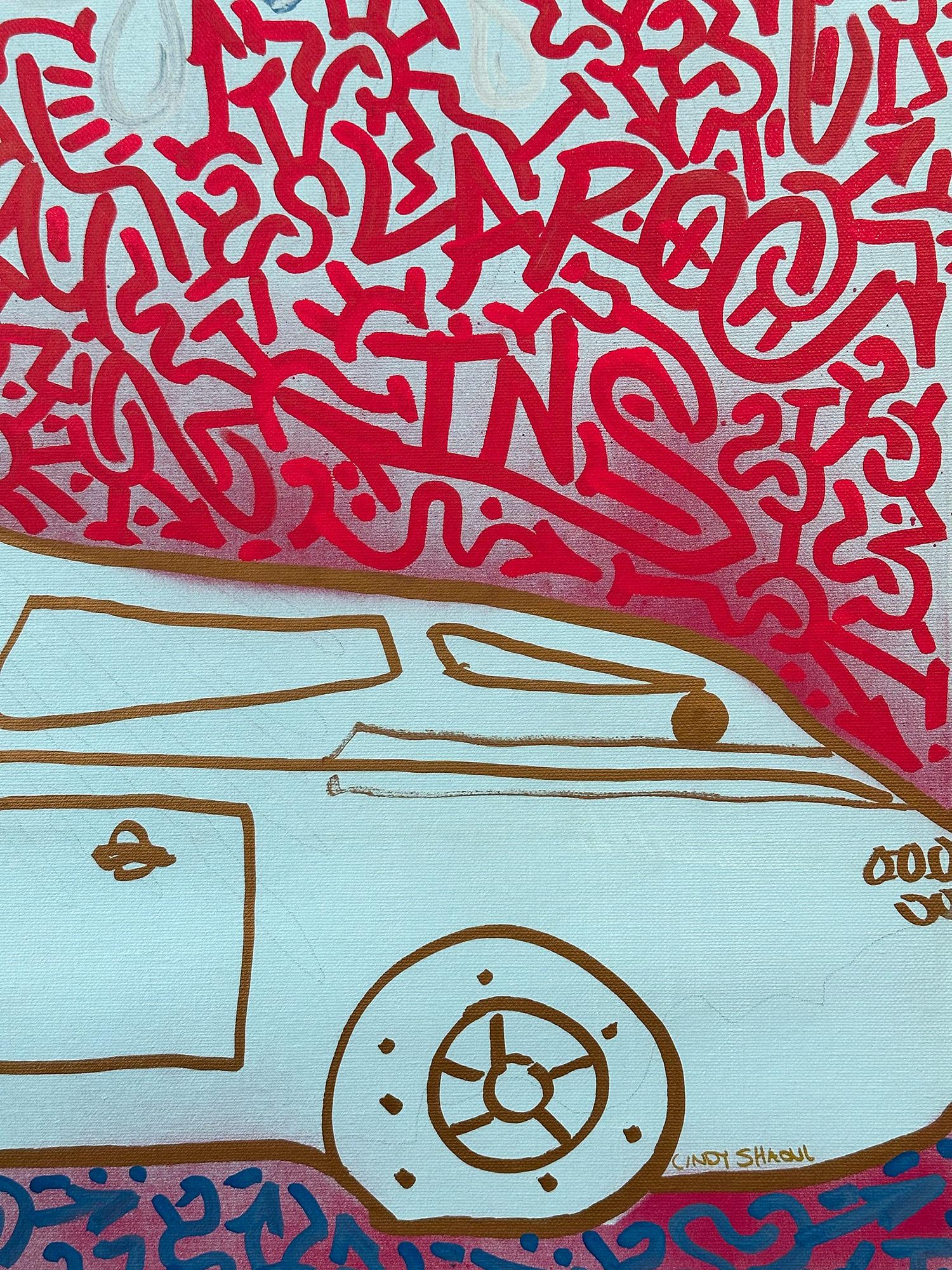 Diese Arbeit ist eine Collaboration zwischen Angel Ortiz (LAII) und Cindy Shaoul. Die Kollaboration begann 2010 mit der ikonischen Serie "Street Cars", die Autos mit Angels charakter...