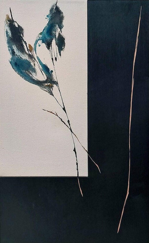 Remembrance #8 von Maho Maeda - Abstraktes Gemälde, Blumen, Textilien und Holz