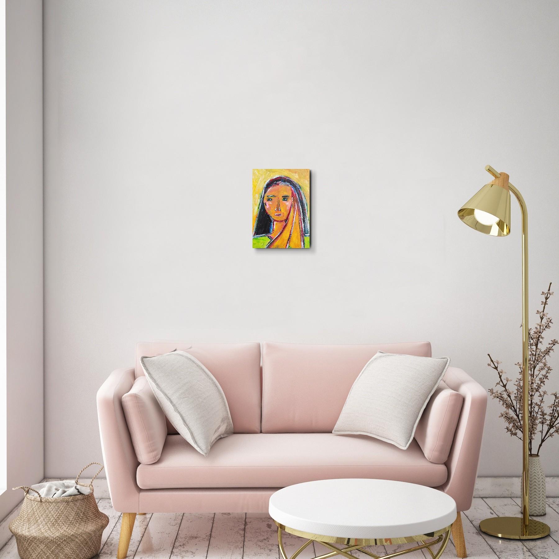 Bunte zeitgenössische figurative Malerei Weibliches Porträt "Ohne Titel II"