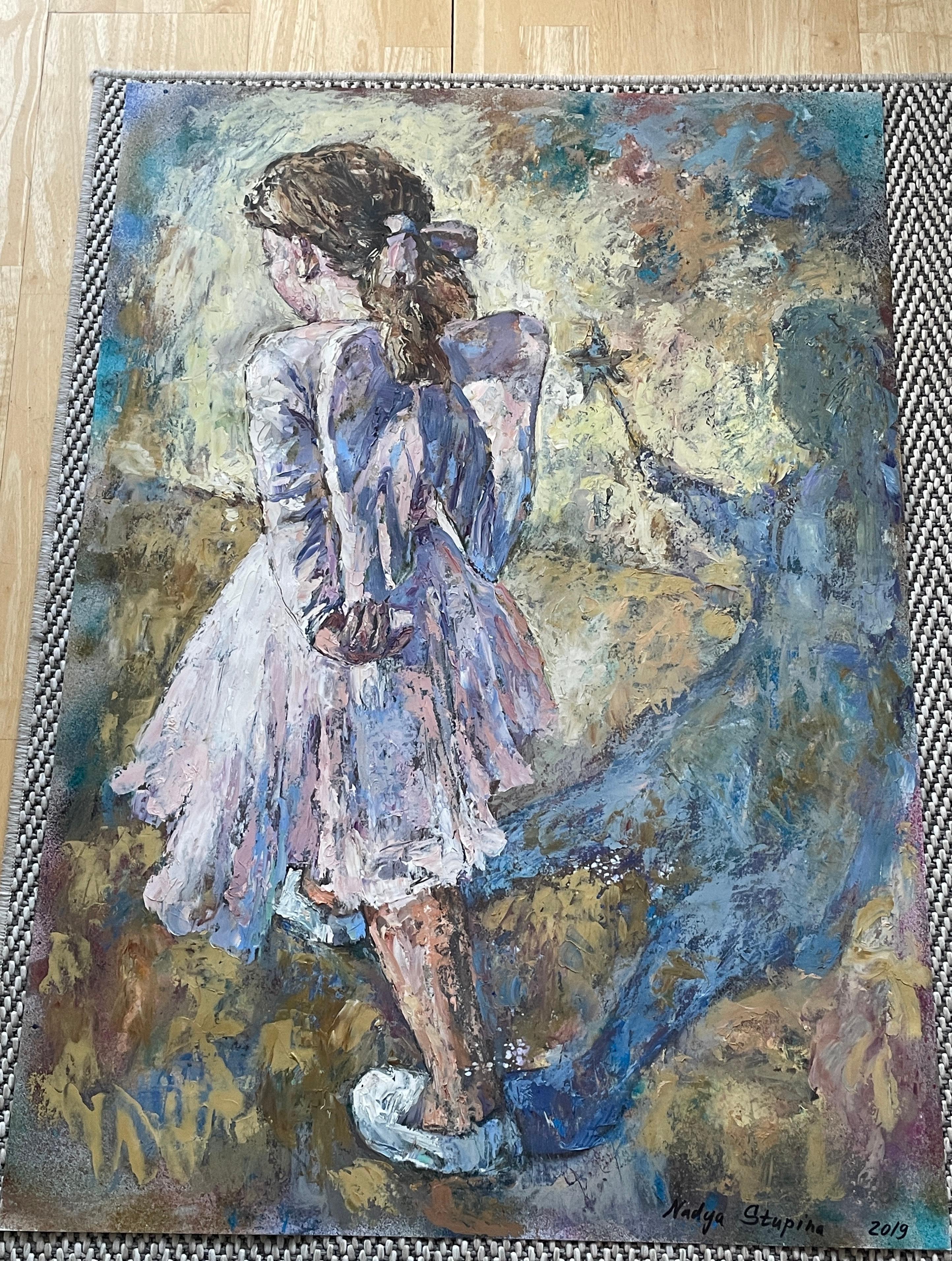Nadezda Stupina"Auf dem Weg zu den Wundern" Original figurative Malerei. Vertikale große Wohndekoration2019