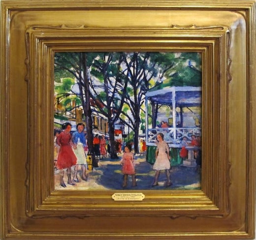 Als gebürtige Philadelphierin war Nancy Ferguson ein hoch angesehenes Mitglied der Philadelphia Ten. Nach ihrem Abschluss an der Philadelphia High School for Girls begann sie ein lohnendes Studium, zunächst an der Philadelphia School of Design for Women bei Elliot Daingerfield und dann an der Pennsylvania Academy of the Fine Arts bei Chase, Breckenridge, Hawthorne, Carles und McCarter. Sie erhielt beeindruckende fünf Stipendien, darunter das begehrte Cresson Traveling Scholarship für Auslandsreisen der Akademie im Jahr 1909. Während sie ihren ständigen Wohnsitz in Philadelphia hatte, verliebte sie sich in das malerische Dorf Provincetown, Massachusetts, wo ihr ehemaliger Lehrer Charles Hawthorne eine Sommerschule leitete. Die meiste Zeit ihres Erwachsenenlebens verbrachte sie an beiden Orten. Sie zog es vor, Straßenszenen zu malen, die ein reges Treiben darstellen. Ihre Philadelphia-Szenen vom Rittenhouse Square und Fairmont Park sind ebenso bekannt wie ihre zahlreichen Ansichten in und um Provincetown. Fergusons frühere Arbeiten werden oft mit denen von Maurice Prendergast verglichen. Dr. Albert Barnes erwarb sogar eines ihrer Werke für seine Sammlung und verwendete es zum Vergleich mit Prendergast in seinem Kurs über Kunstverständnis. Heute befindet sich das Werk in der ständigen Sammlung der Barnes Foundation. Ihre späteren Werke aus der Mitte der 1920er und 1930er Jahre nehmen einen eher modernistischen Stil an. Diese zeigen in der Regel die dicht gedrängte Architektur, die gewundenen Straßen und die überfüllten Häfen von Provincetown. Ferguson stellte nicht nur mit The Philadelphia Ten (1923-27, 1930-38) aus, sondern wurde auch in viele renommierte Salons eingeladen, darunter die Pennsylvania Academy of Fine Arts, die Corcoran Gallery of Art, der Philadelphia Sketch Club, die National Association of Women Painters and Sculptors, die Woodmere Art Gallery, die Philadelphia School of Design for Women, die National Academy of Design, das Carnegie Institute, das Art Institute of Chicago und der Pariser Salon.