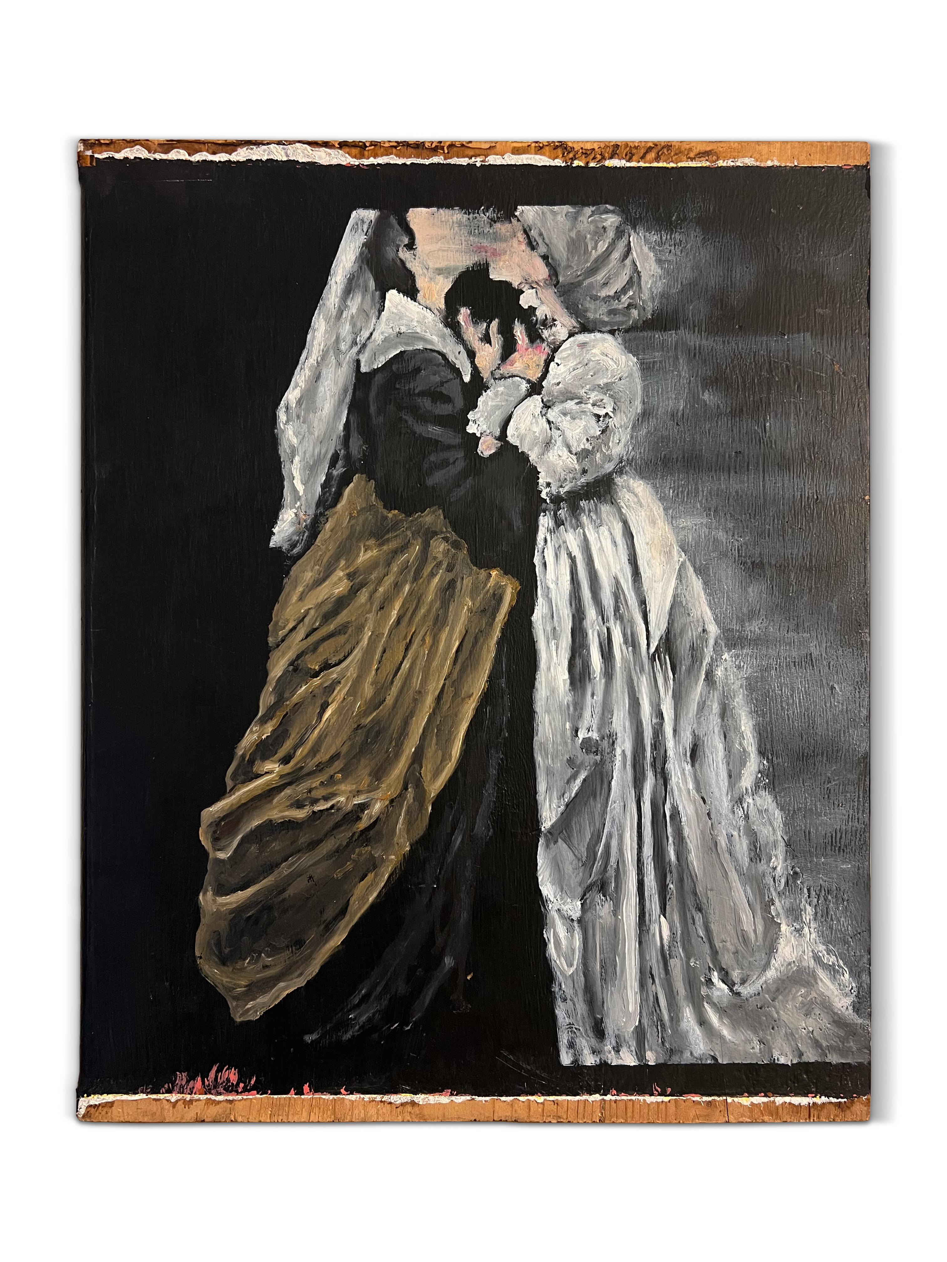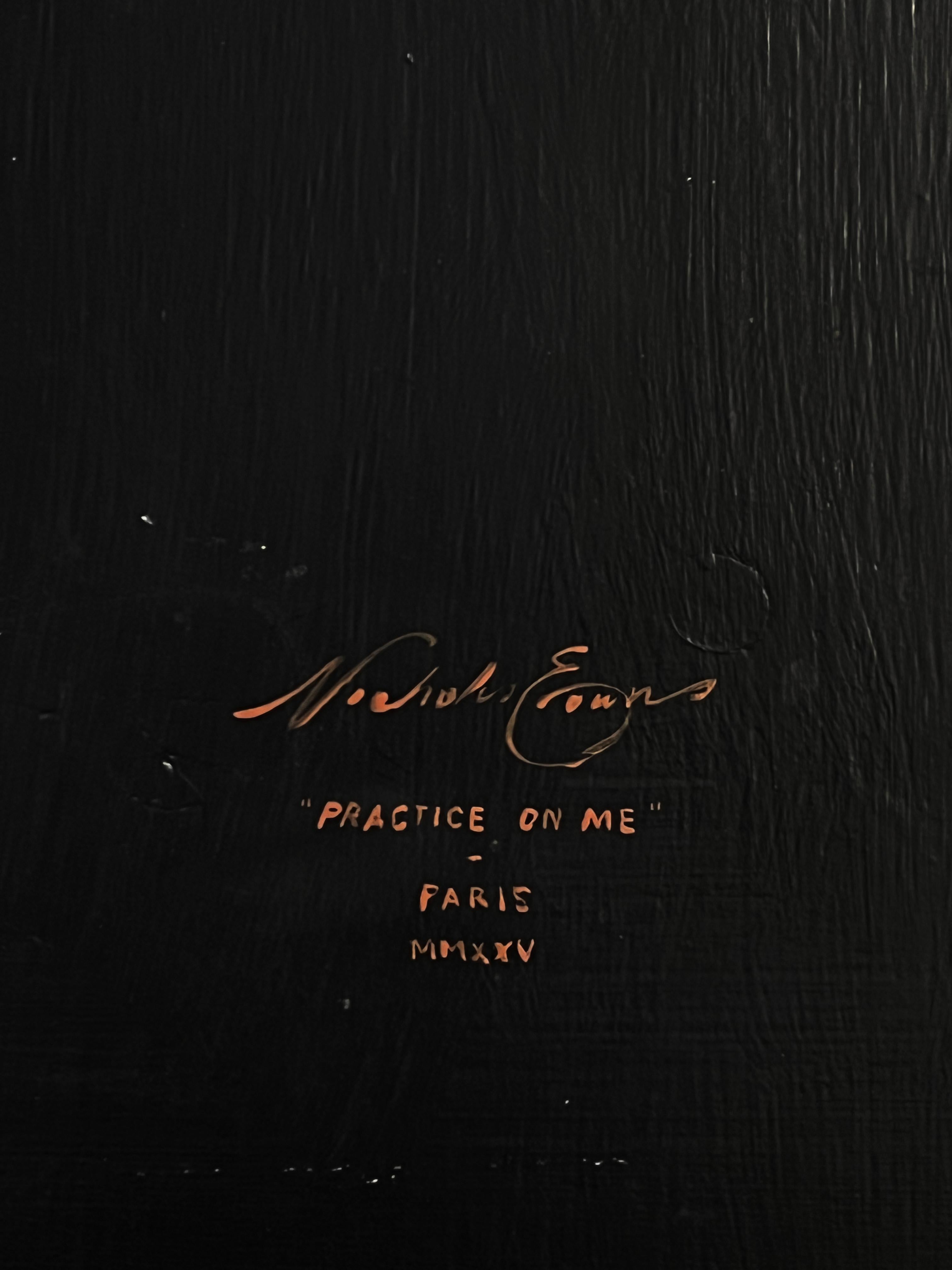 Nicholas Evans"Practice On Me" (Zeitgenössisch, Sinnlich, Weiblich, Frauen, Figurenmalerei, Holz)2025