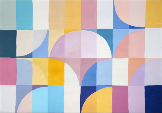 Diese Serie abstrakter geometrischer Gemälde von Natalia Roman lässt sich von den schlichten Rastern und Kurven der Bauhaus-Architektur inspirieren, während sie gleichzeitig helle un...