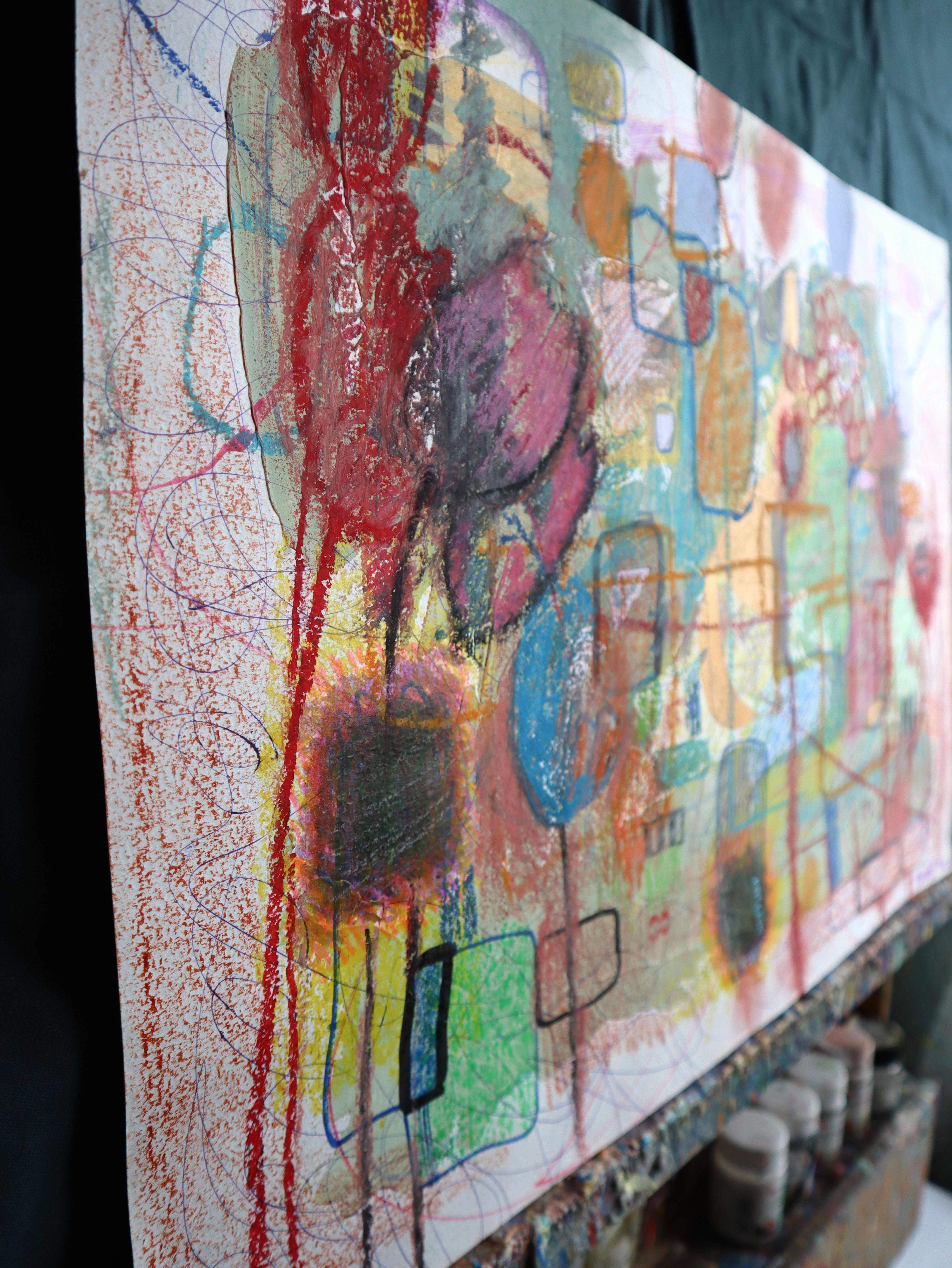On the paper acrylic, oil pastel, felt-tip pen, ink, gold leaf, pencils, silver,mixed media.