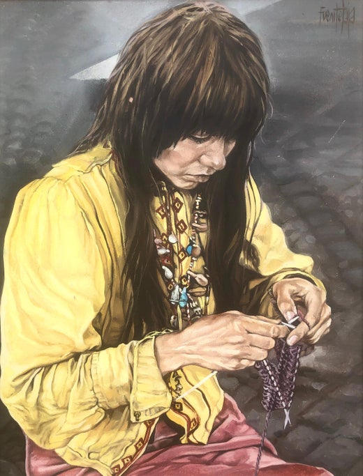 Frau Hippie Original Öl Acryl auf Leinwand Gemälde Realismus Spanien Sitges 70er Jahre