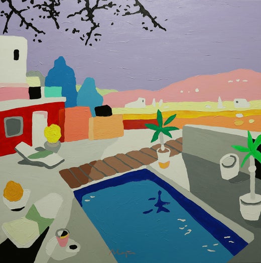 Lorenzos Arbeit kombiniert Farbinspirationen der Impressionisten und Stilistiken des Pop wie David Hockney in jedem Gemälde, um etwas Interessantes und Designorientiertes zu schaffen.