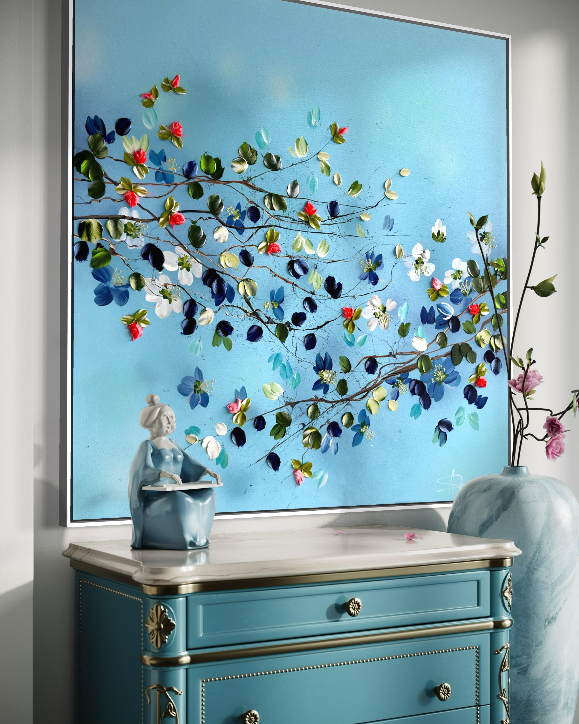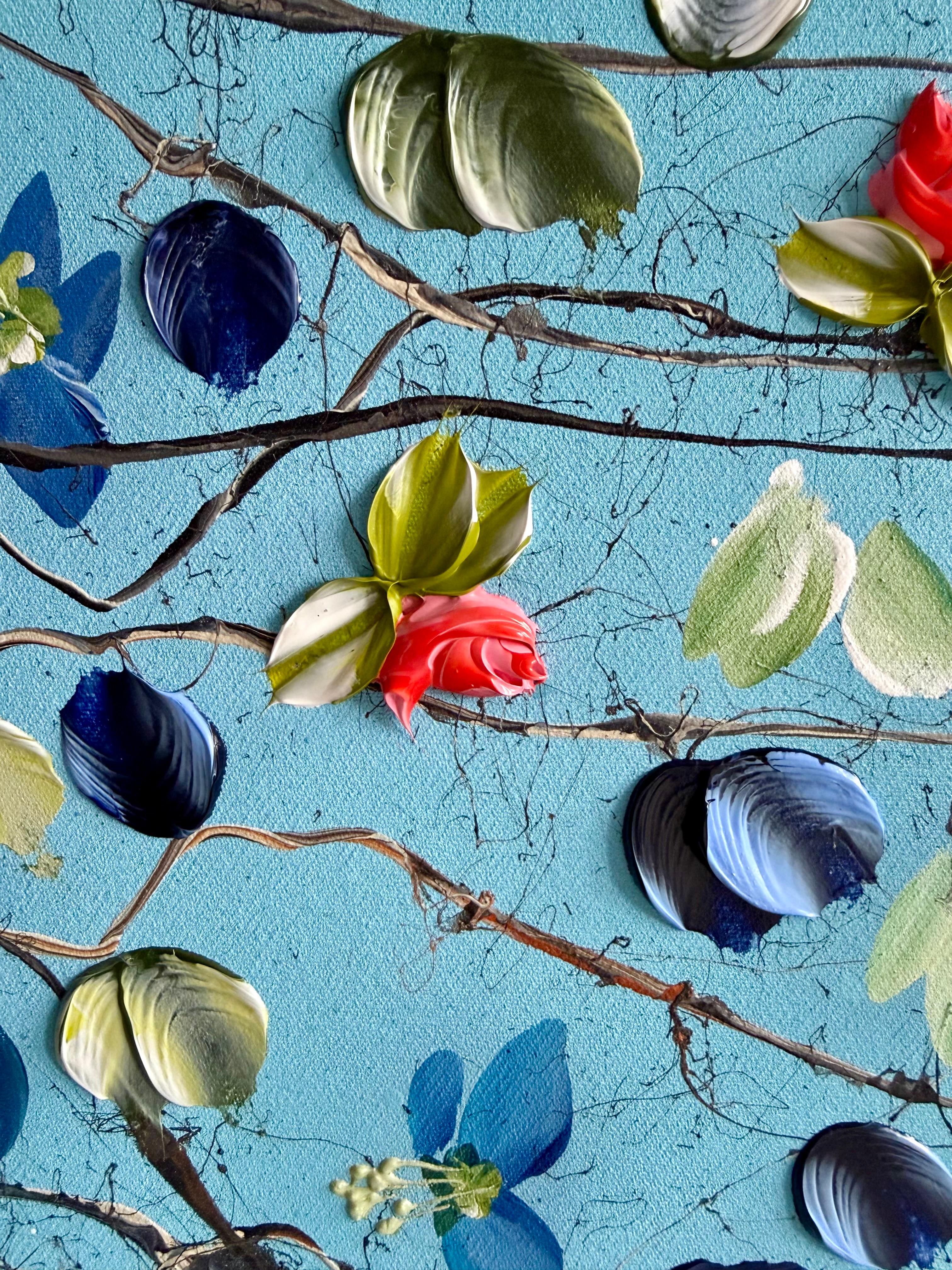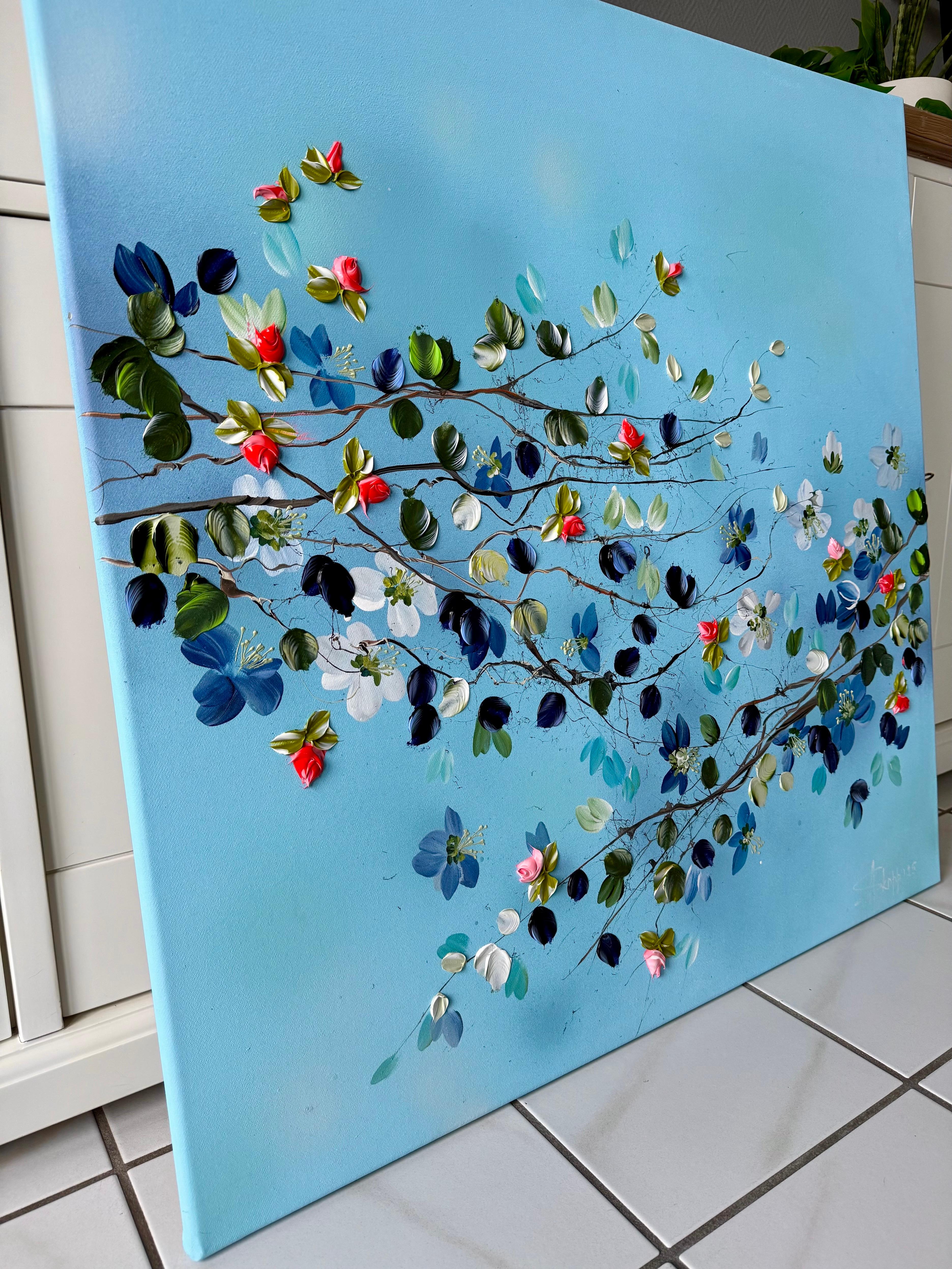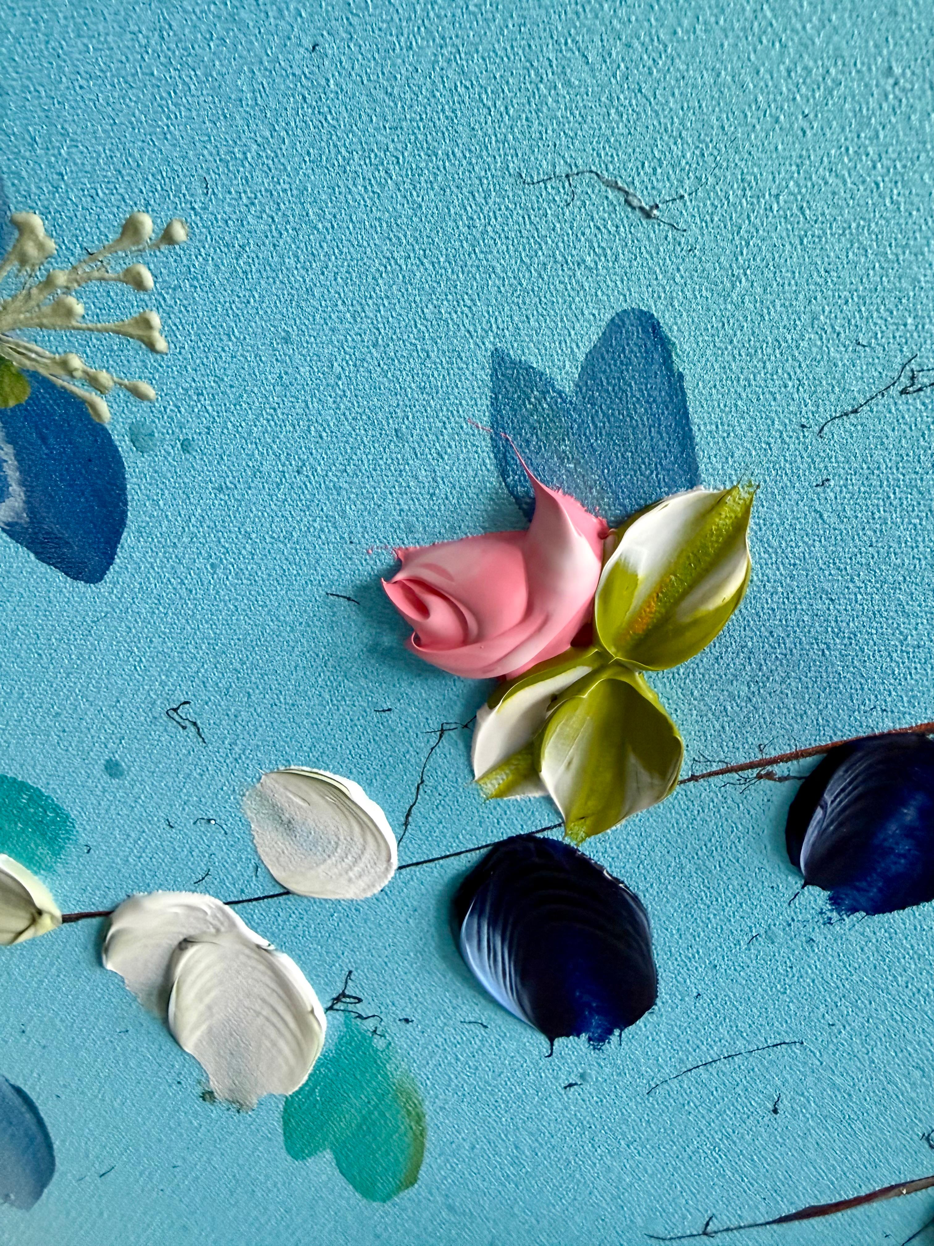 Anastassia Skopp"Blaue Stille" hellblaues 3d impressionistisches Gemälde mit Blumen auf Leinwand2025