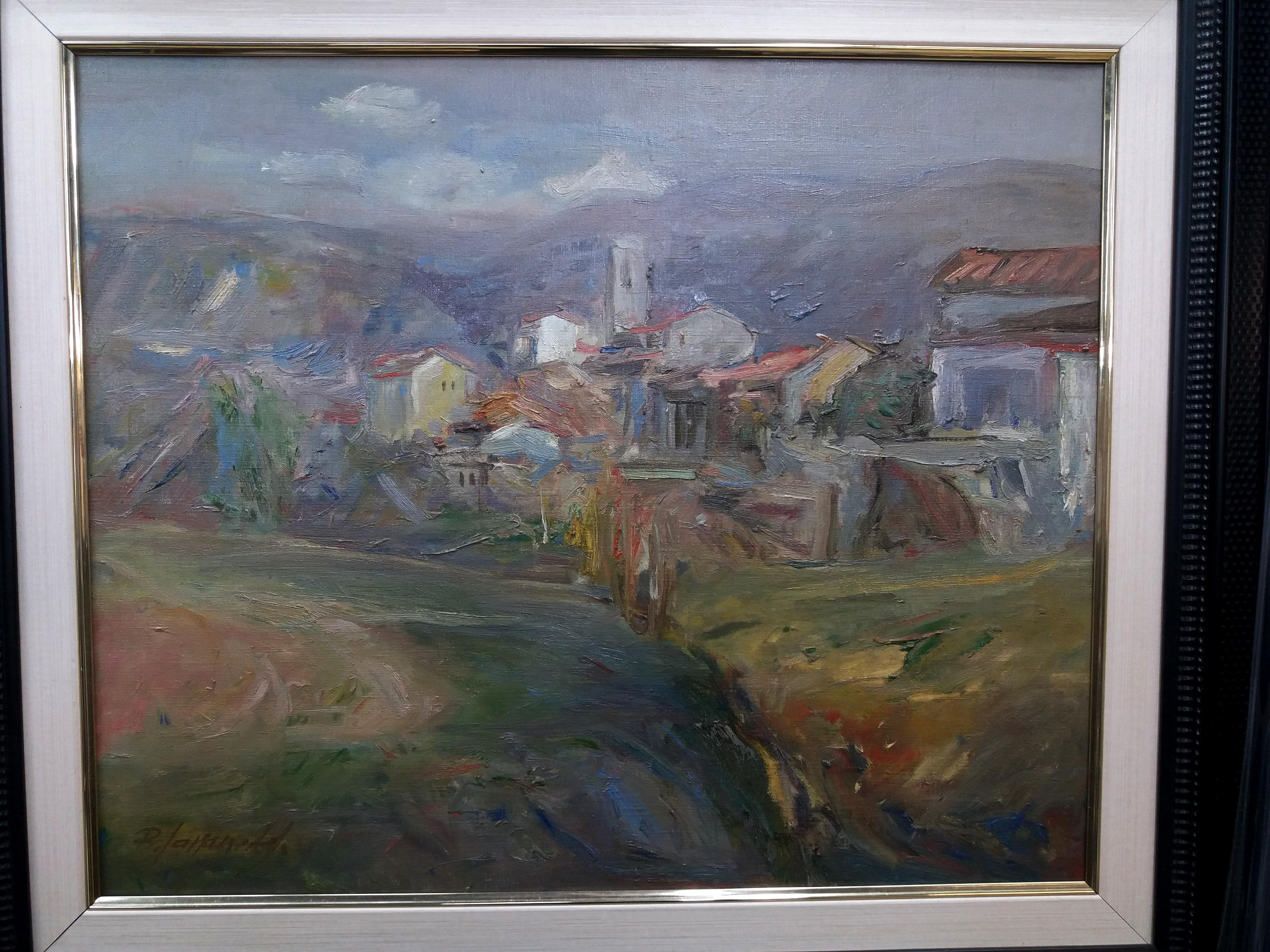 "Rupit". Original Landschaft Öl Leinwand Gemälde 1975 . virtuell gerahmt