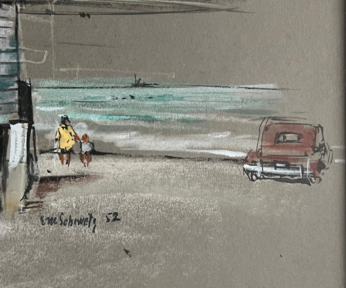 M college, College Station, Texas (1921). In1928, Schiwetz moved to New York City where he studied lithography and etching at the Art Students League. During this time, he successfully marketed his work to publications including Scribner's, House Beautiful and the Architectural Record. Schiwetz returned to Texas in 1929 and became an art director and partner in the successful Houston advertising agency of Franke, Wilkinson, and Schiwetz. After retiring from the advertising agency in 1966, he devoted himself almost entirely to painting and drawing. In 1974, he moved to College Station where he worked on campus scenes at his alma Mater. The Houston Art League honored Schiwetz in a festive tribute the year before his death and named him Texas Artist of the Year. He died in Cuero, Texas in 1984.Schiwetz was a member of the Associated Artists of Houston; California Watercolor Society; Contemporary Arts Association; Southern States Art League; Texas Society of Architects; Texas Fine Arts Association* and the Texas Watercolor Society. Exhibitions included American Watercolor Society; Philadelphia Watercolor Society; Art Institute of Chicago; Southern States Art League Annual Exhibition; Texas Painting and Sculpture Annual Exhibition; Western Watercolor Exhibition, San Francisco and the Pennsylvania Academy of the Fine Arts, Philadelphia.