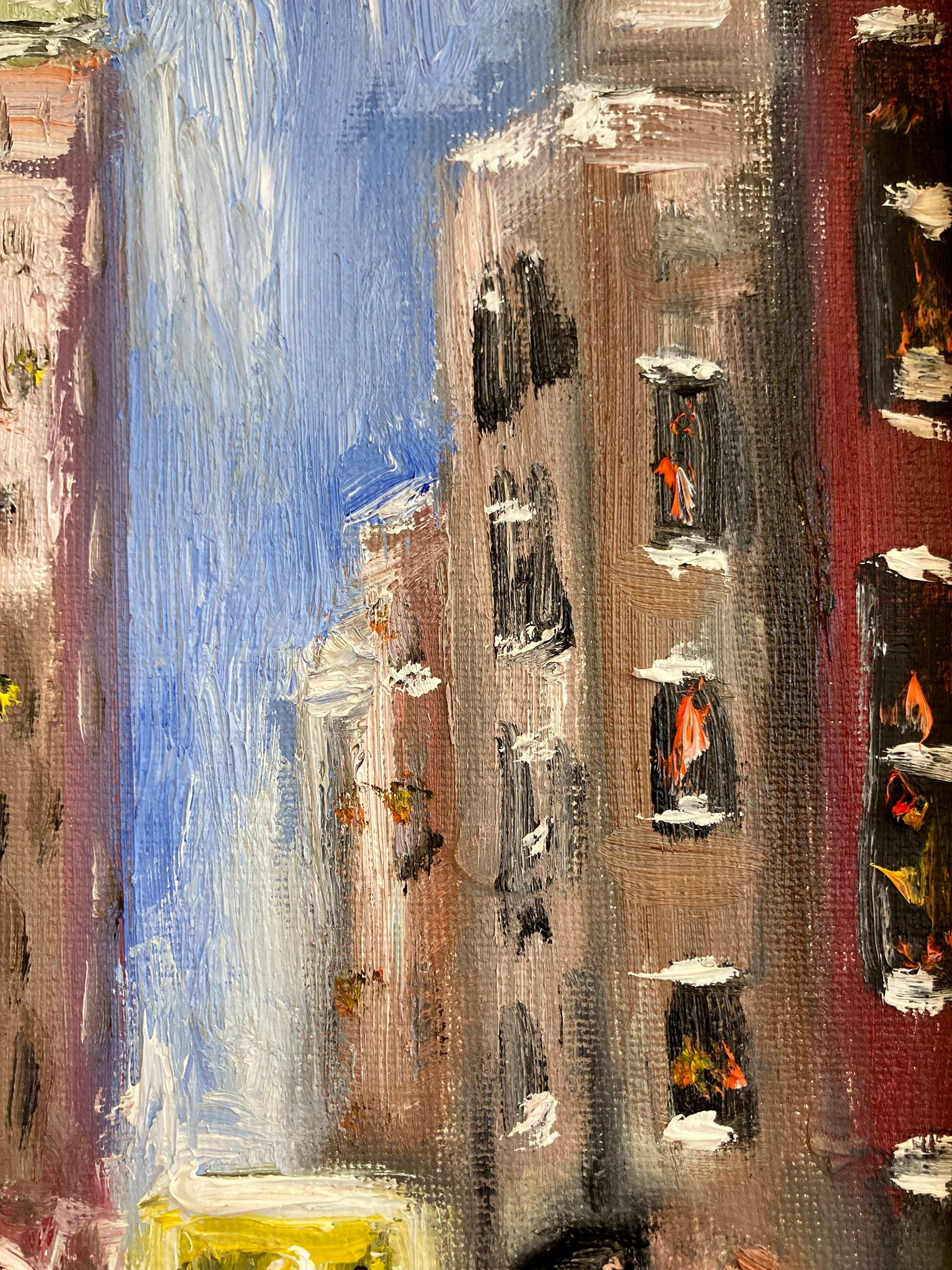 Cindy Shaoul"Snow in NYC" Impressionist Oil Painting in Style of Guy Wiggins Framed2025