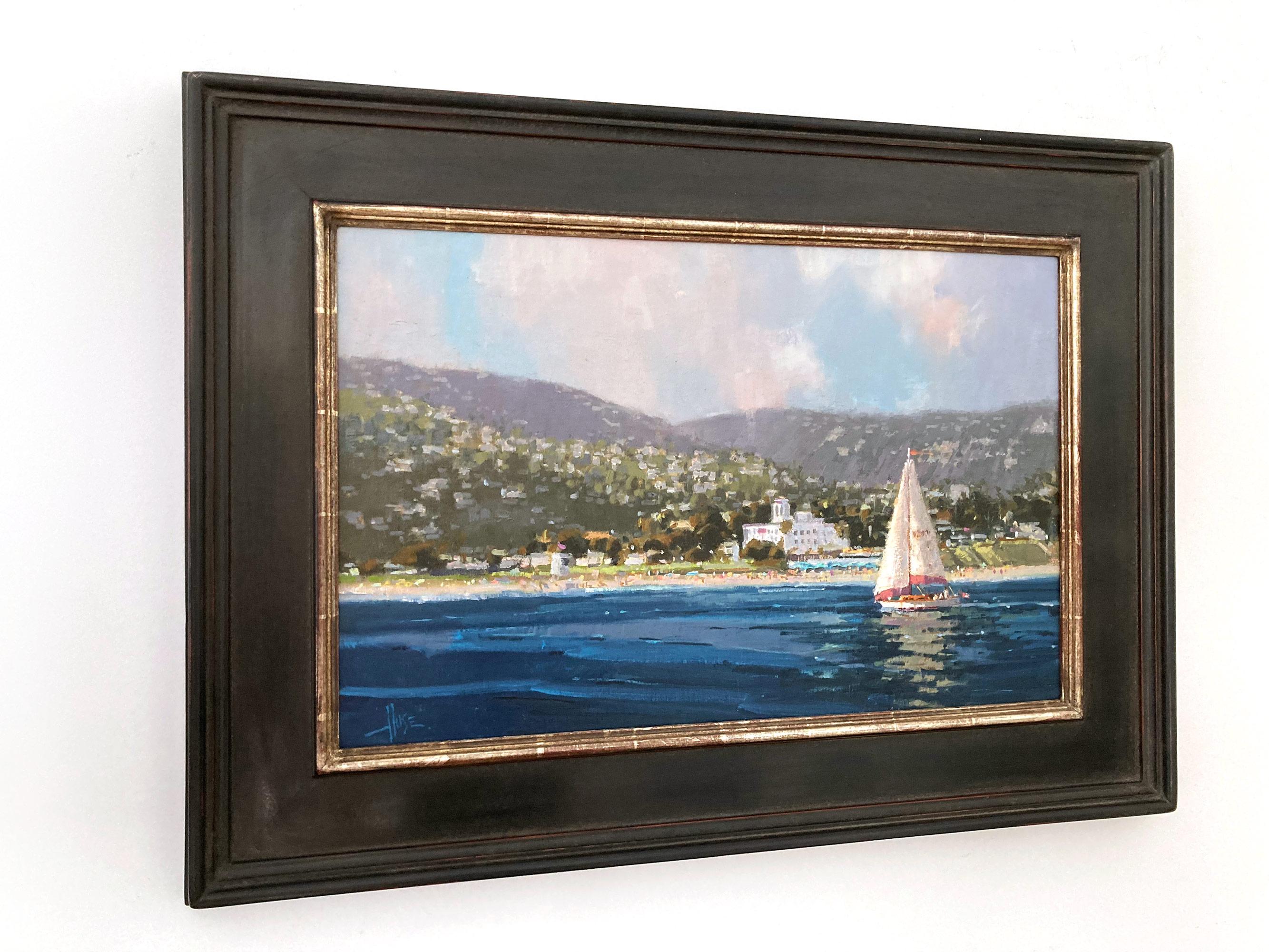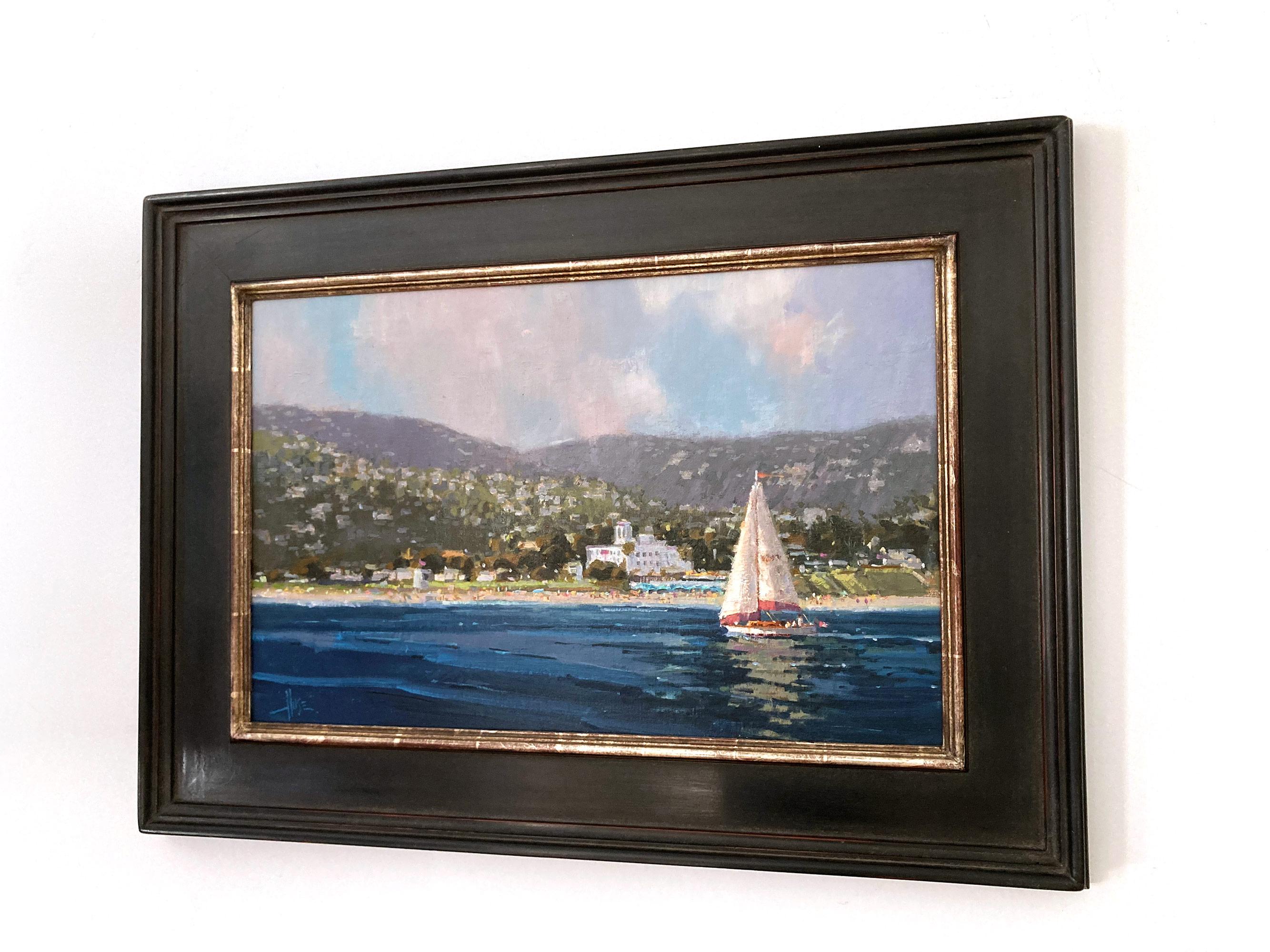 "Was für ein Tag für einen Tag Traum" Plein Air Segelboot w Küstenansichten Gemälde gerahmt