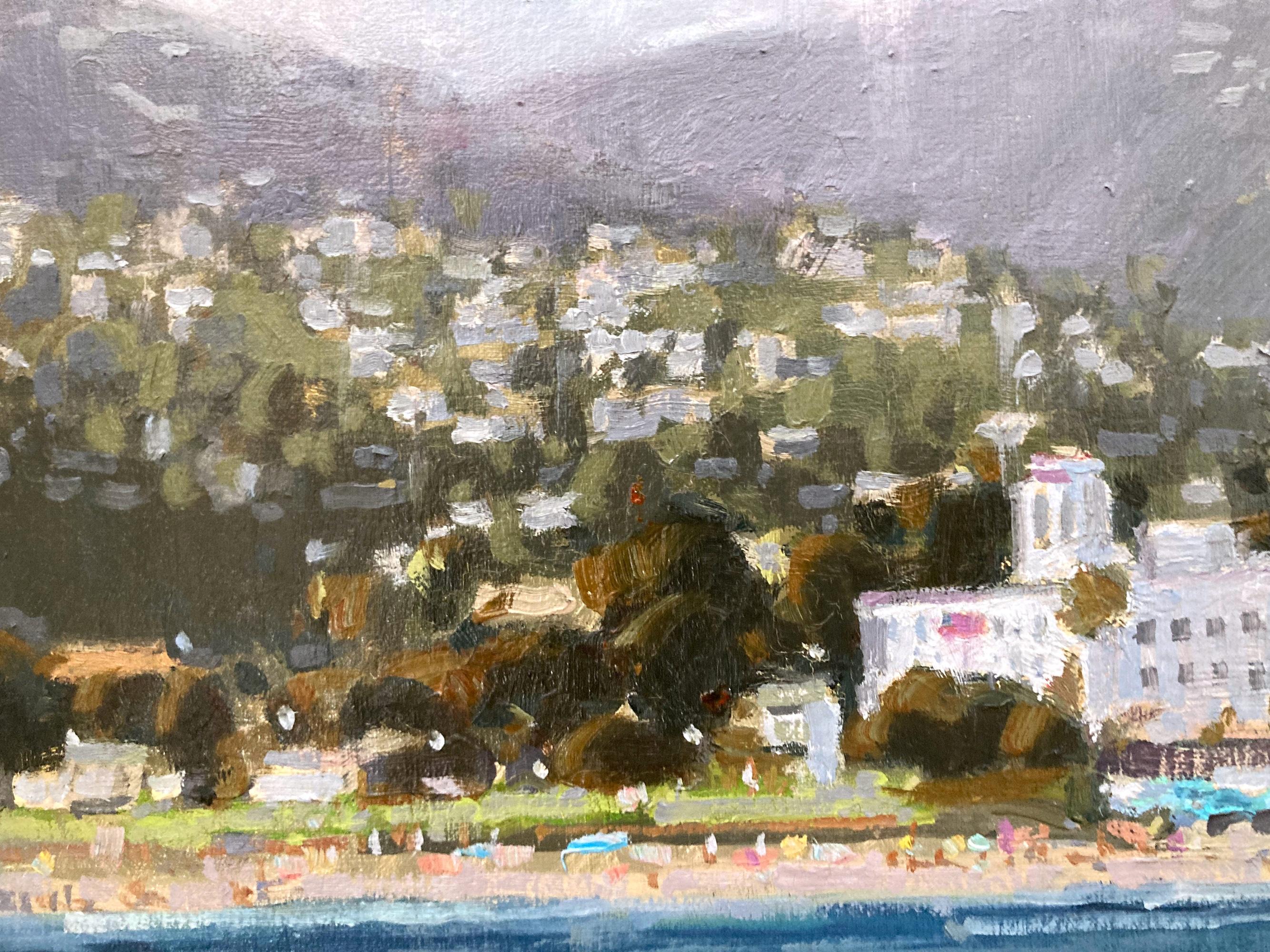 Unknown - Gerahmte nautische Meereslandschaft, Ölgemälde eines amerikanischen Impressionisten, Coastal Seascape