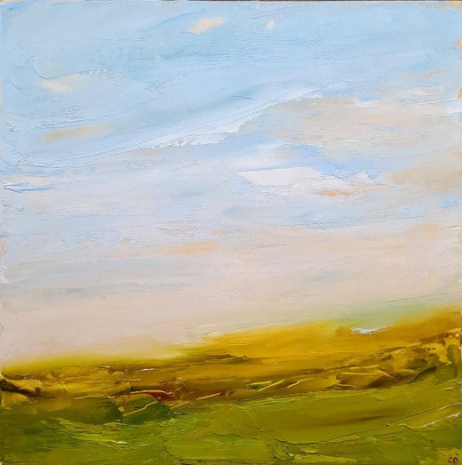 Georgie wuchs in der Nähe der Küste im ländlichen Westwales auf, umgeben von sanften Hügeln und Ackerland, was zweifellos einen Einfluss auf ihre heutige Praxis hat. Nachdem sie nach Cheltenham gezogen ist, um Kunst zu studieren, hat sie sich dort niedergelassen. Die Arbeit teilt sich auf in das Malen in der Natur, das Einfangen von Elementen der umgebenden Landschaft und die Arbeit im Studio. "Ich arbeite recht schnell und meine Zeichen sind spontan und impulsiv, ich freue mich über glückliche Zufälle und genieße das Leben, das in einem Bild zu sehen ist, wenn der Künstler instinktiv arbeitet. Ich lasse mich inspirieren, wenn ich das Land und das Meer erforsche, um Farben und Formen zu finden, die mir ein Gefühl für den Ort geben. Die Küste ist für mich von besonderem Interesse; der ständige Schwung des Meeres und das sich ständig verändernde Licht sind eine unerschöpfliche Inspirationsquelle." Georgie wuchs im ländlichen Westwales auf, umgeben von sanften Hügeln und bunten Feldern, was zweifelsohne ihre heutige künstlerische Praxis beeinflusst hat. Nachdem sie nach Cheltenham gezogen ist, um Kunst zu studieren, arbeitet sie nun von ihrem Studio aus. Inspiriert von der britischen Landschaft, erkundet sie in ihren Ölgemälden die Schönheit der Landschaft.