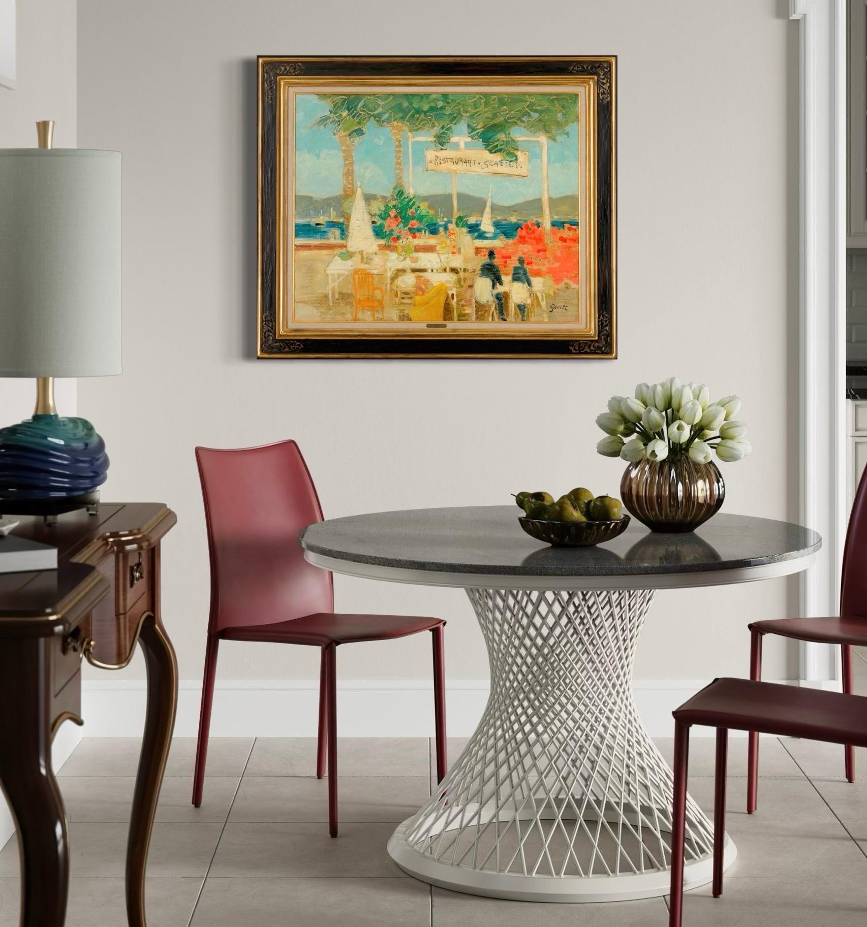 Gilles Gorriti"Au Bord de la Mer, ca. 1980" Südfrankreich Küstenrestaurant Segelboote SigniertCIRCA 1980