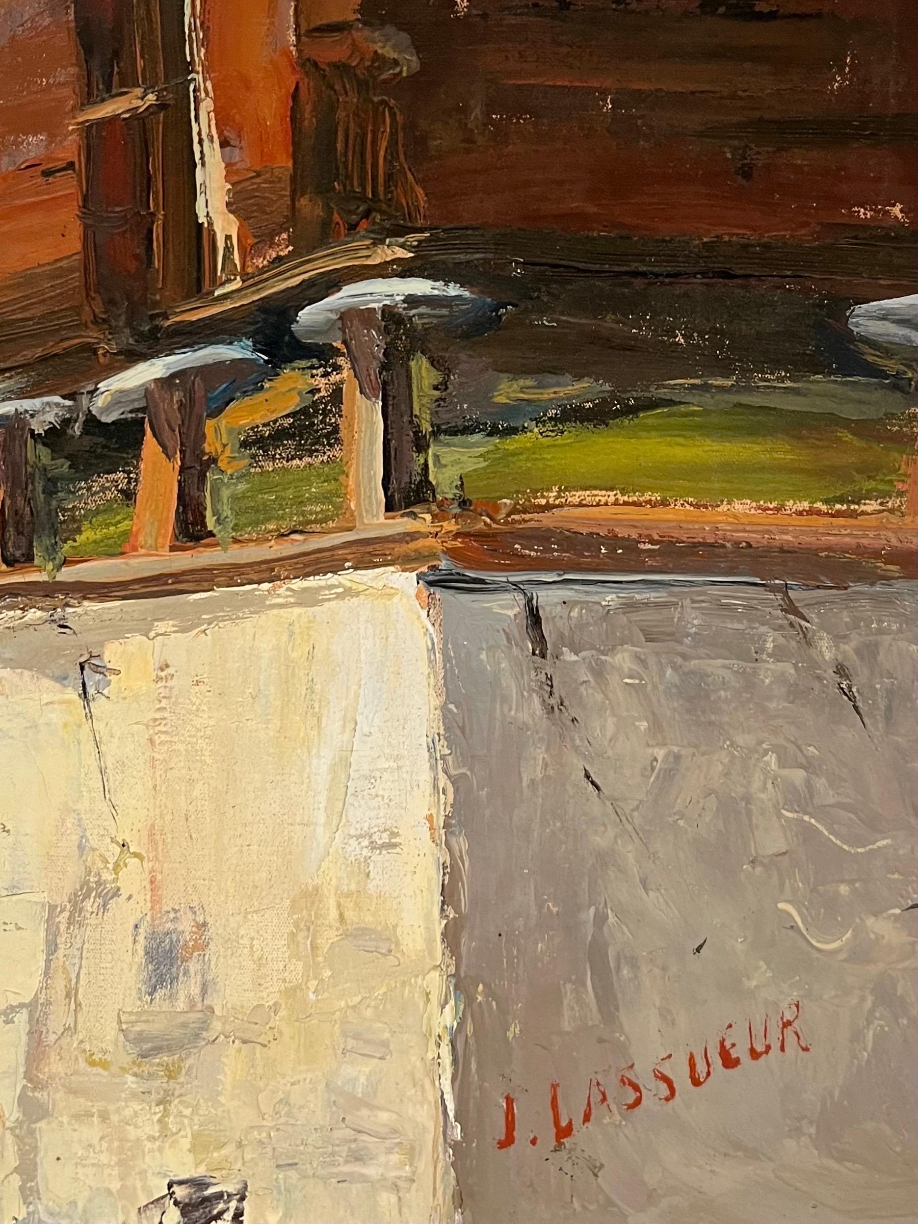 Lassueur malte vor allem in Öl auf Leinwand oder Paneel und malte Schweizer Berge, Chalets und das Landleben. Sein Stil war modernistisch und expressionistisch, mit kräftigen Farben und vereinfachten Formen. Zu seinen bekanntesten Werken gehören Sur le balcon, Montagnes et mazots, Valais und Brunnen. Seine Kunst spiegelt die Schweizer Landschaftstradition aus der Mitte des Jahrhunderts wider.