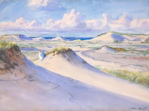 John Whorf war ein Meister der Aquarellmalerei und stammte aus Boston. Er war bekannt für seine Darstellungen von Genresujets und Ansichten von Häfen und Strandszenen. Er studierte Malerei am St. Botolph Studio und an der School of the Museum of Fine Arts der Tufts University in Boston sowie an der Académie de la Grande Chaumière und der École Nationale supérieure des beaux-arts in Paris. Whorf erhielt 1938 den Ehrendoktortitel der Harvard University und wurde 1938 mit einer Medaille und 1939 mit einem Preis des Art Institute of Chicago ausgezeichnet. Seine erste Ausstellung mit 52 Gemälden, als er 20 Jahre alt war, war ausverkauft. Nach vielen Jahren des Reisens verbrachte Whorf die letzten Jahre seines Lebens in Provincetown, Massachusetts, und war viele Jahre lang Teil der dortigen Künstlerkolonie. Er starb dort im Jahr 1959.