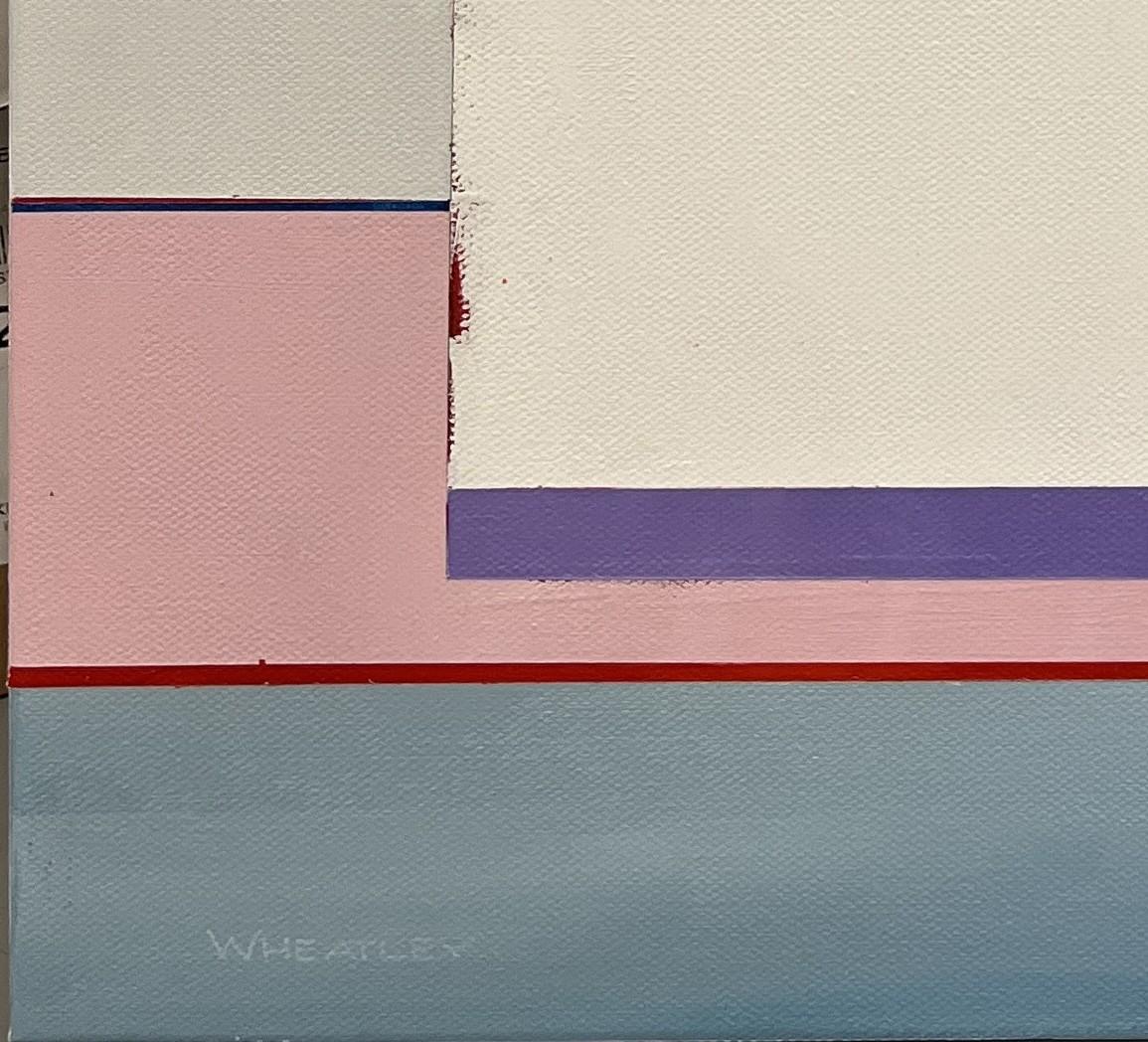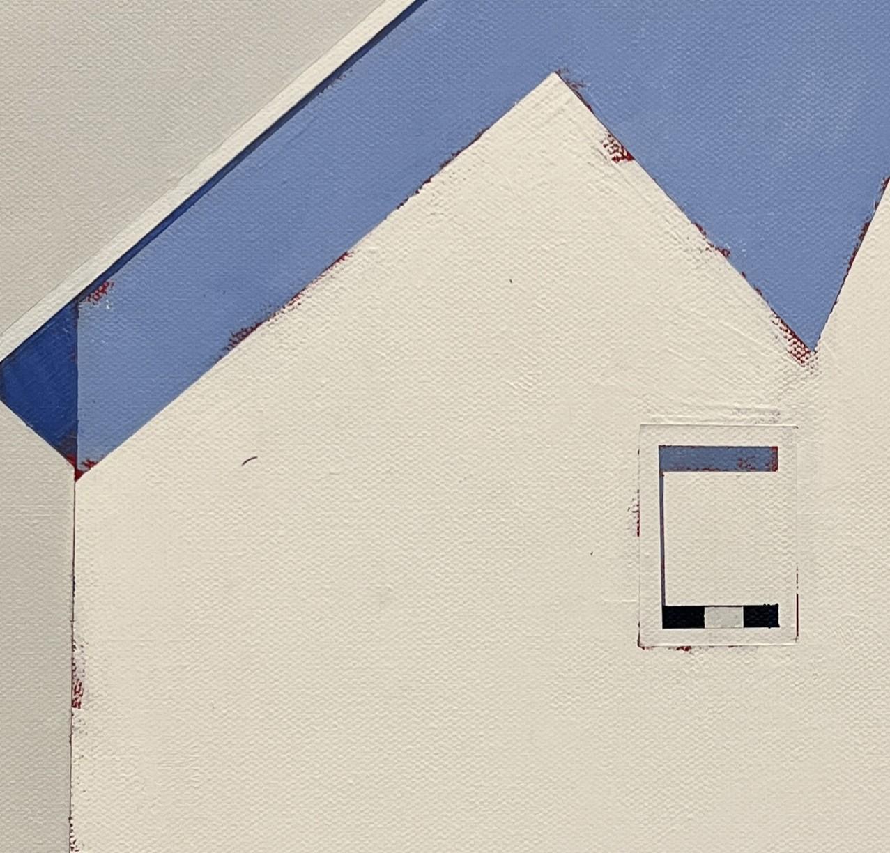 Justin Wheatleys "Lovely Day" ist ein originelles, handgefertigtes Acrylgemälde, das ein Makro einer weißen Scheune zeigt.
