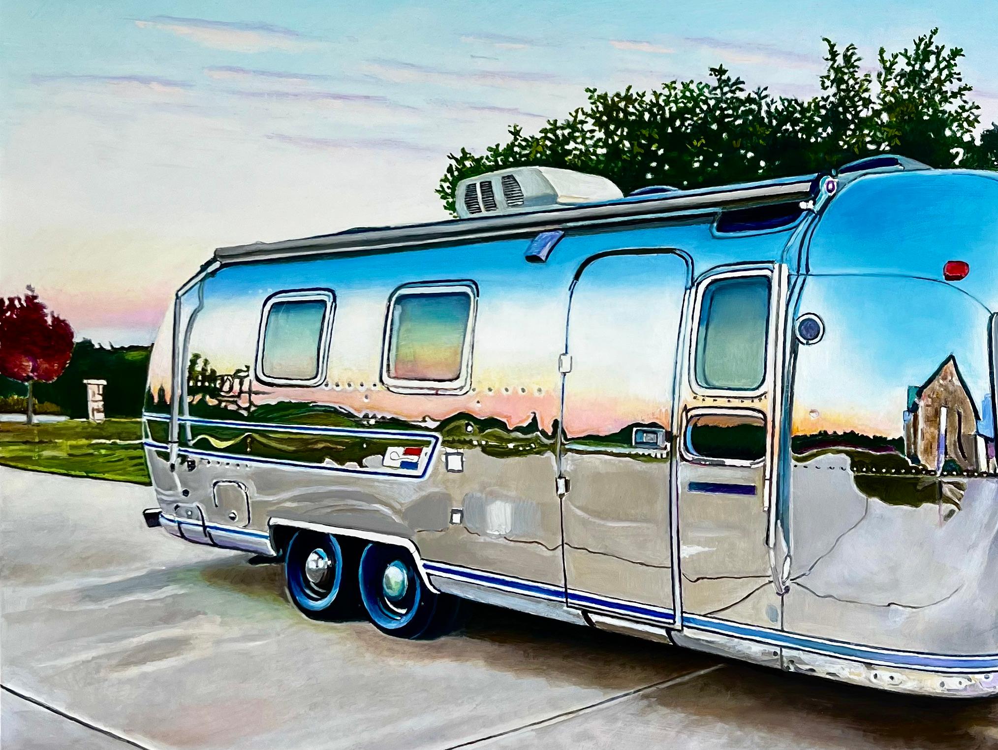 Megan Eisenberg"Airstream in der Abenddämmerung" Original Ölgemälde2024