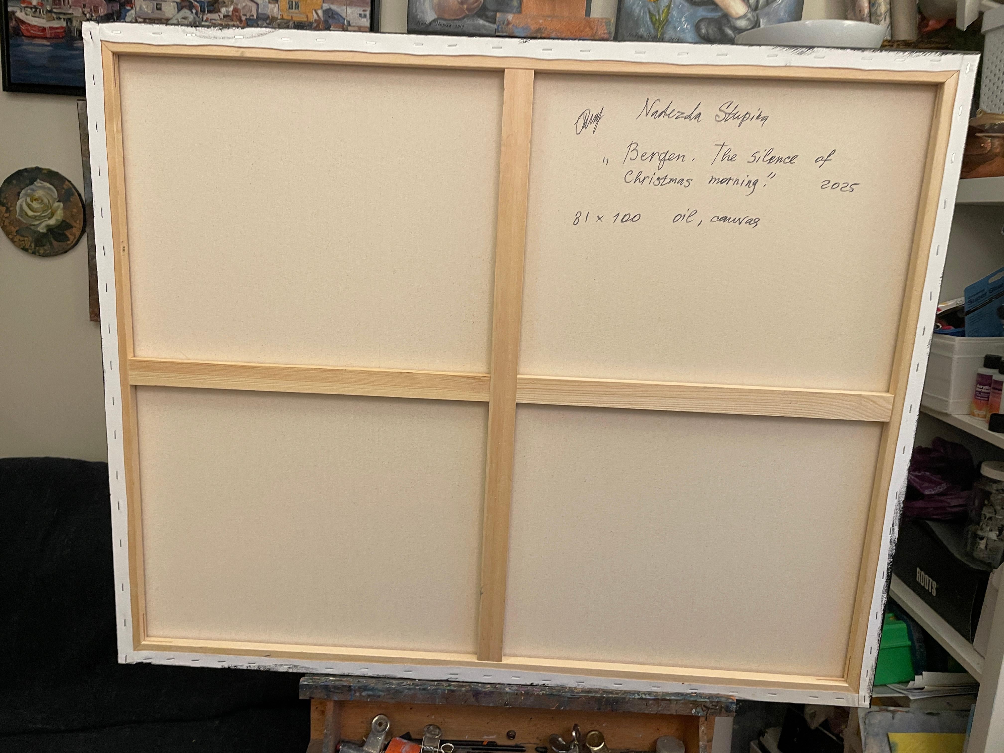 Das Gemälde ist von der Künstlerin Natalya Platonova auf der Vorder- und Rückseite der Leinwand signiert.