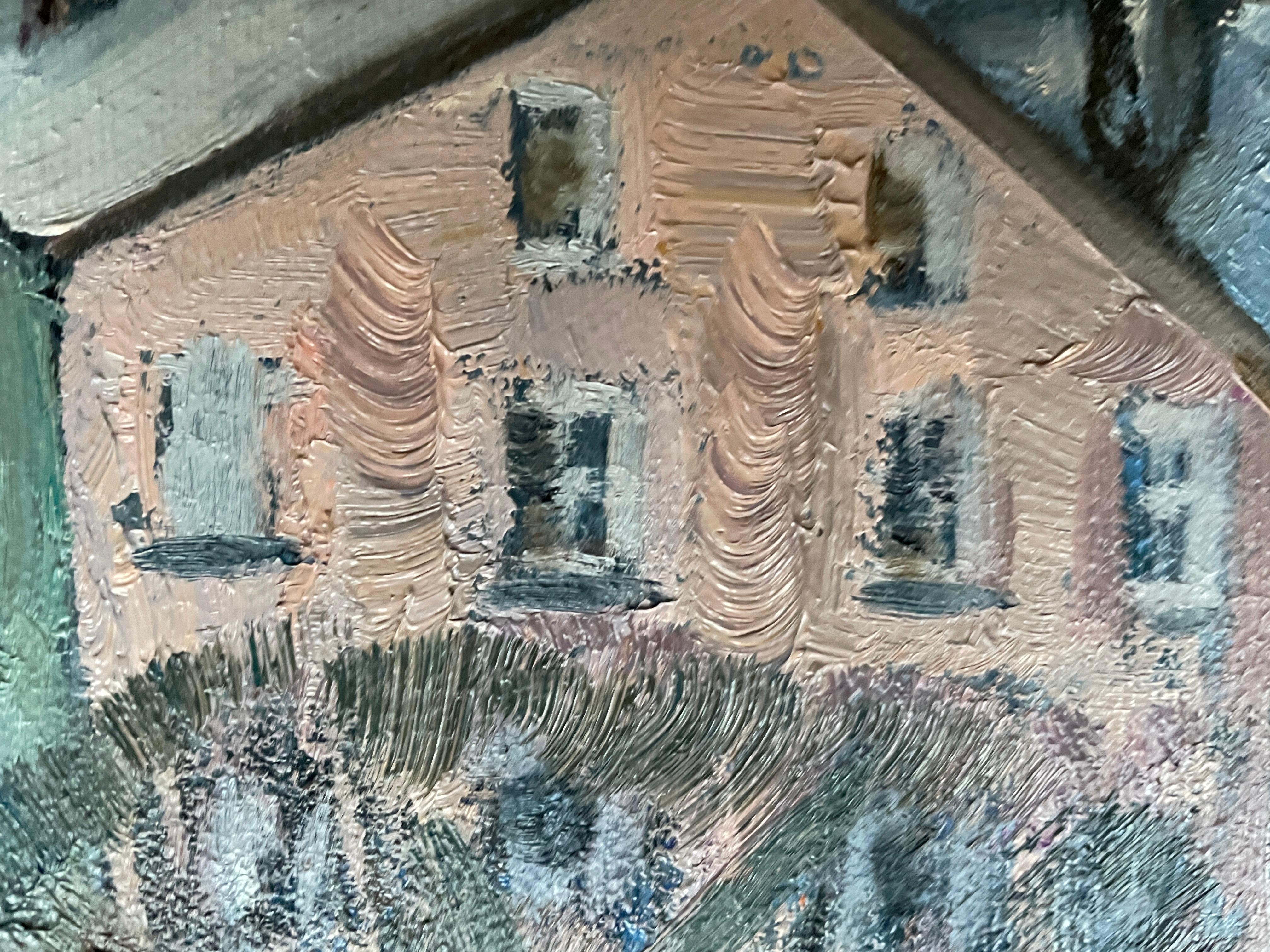 „Village-Haus“, Gemälde, Öl auf Leinwand