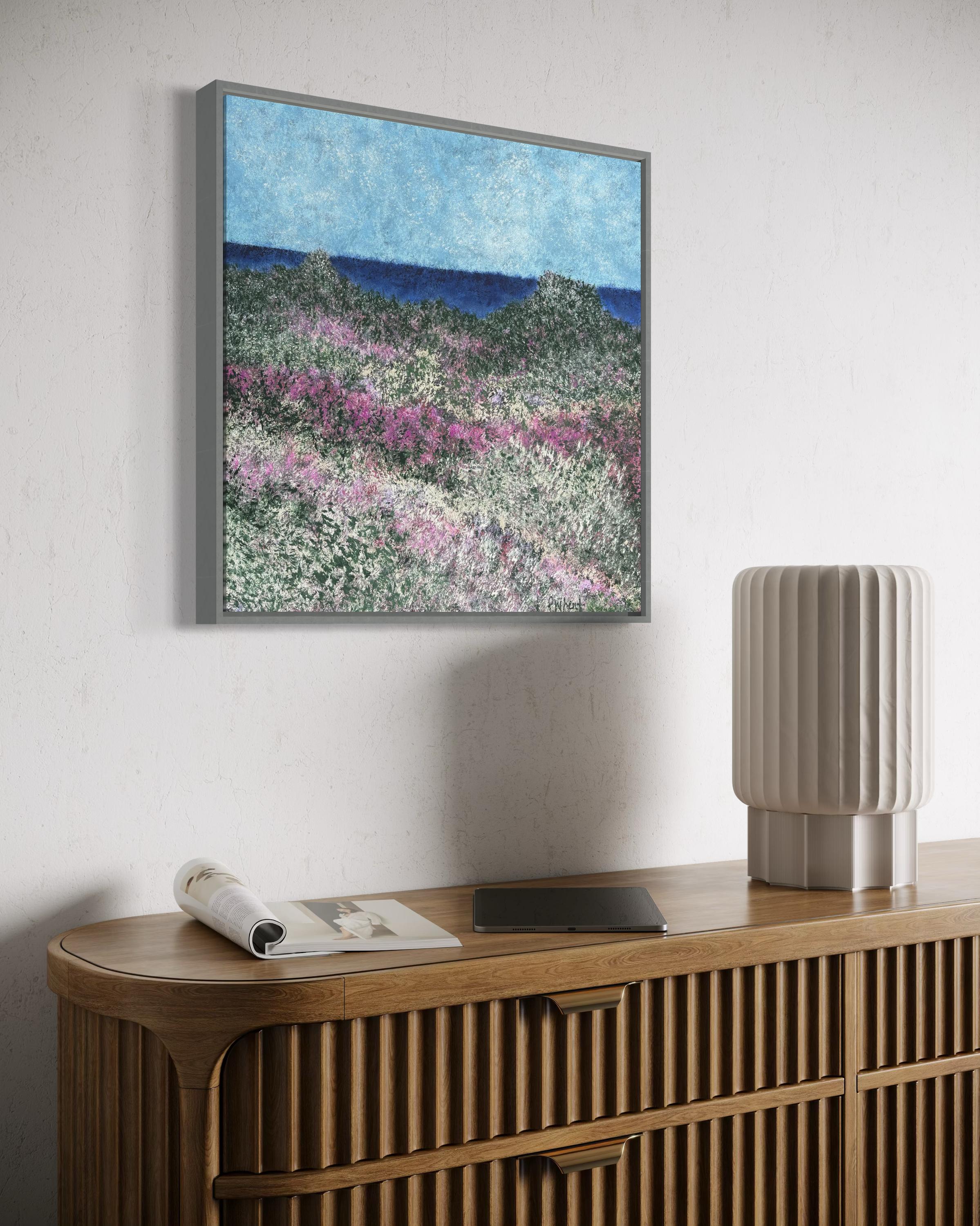 "Asilomar Coastline" - Helle post-impressionistische Meereslandschaft mit lila Wildblumen
