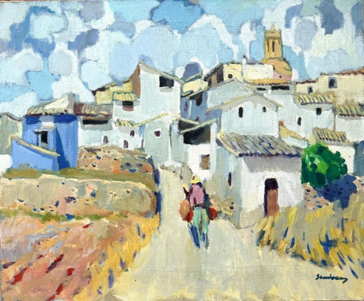 Ramon Sanvisens MarfullSpanische Stadt Öl auf Leinwand Gemälde Spanien mediterrane Landschaftc. 1960