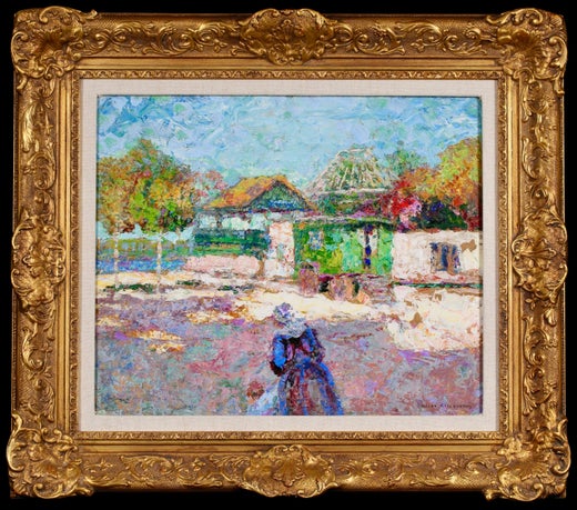 Victor CharretonFigur vor einer Kirche – postimpressionistische Landschaft, Ölgemälde von Victor Charretonc.1920