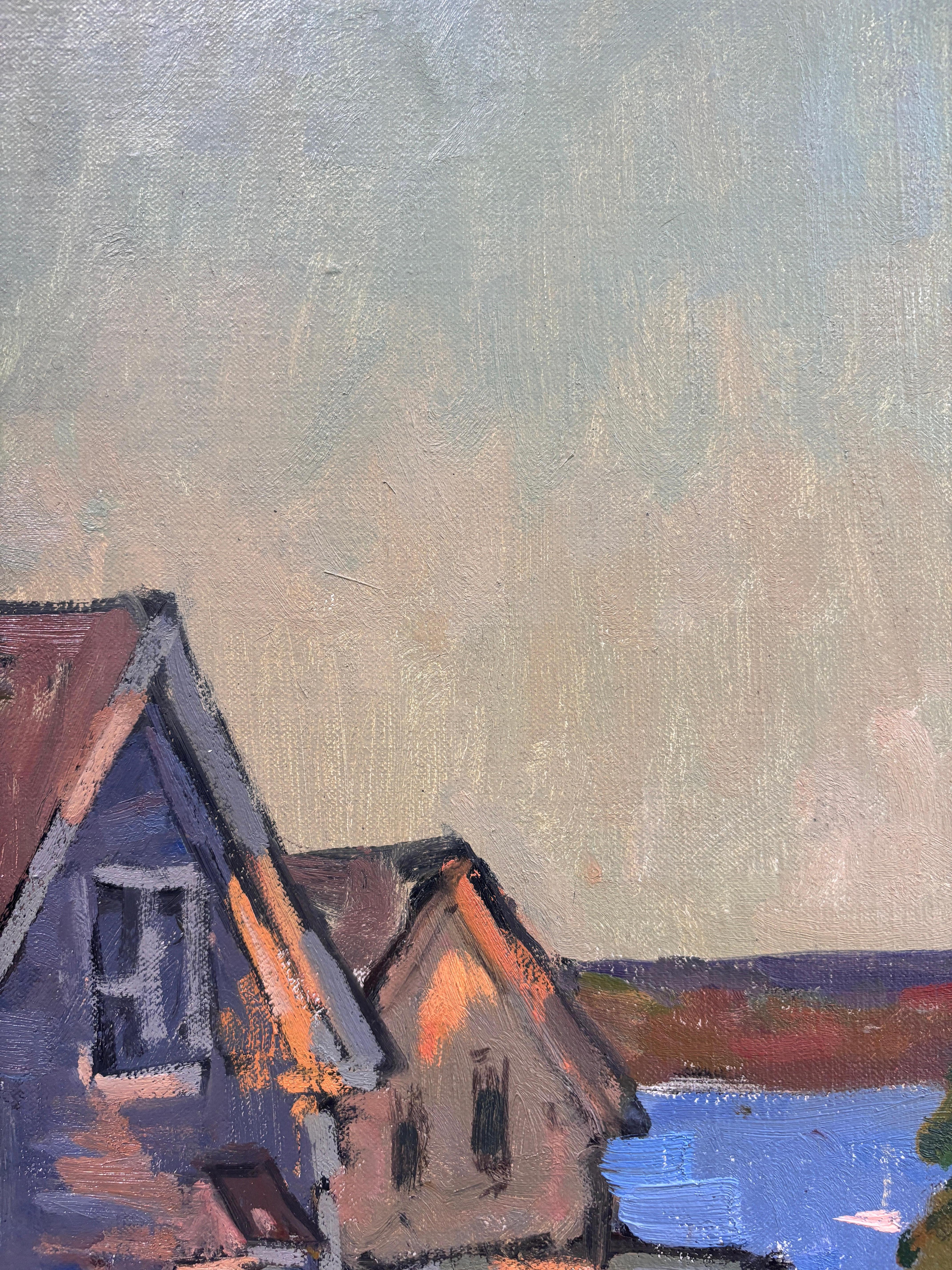 Viktor Butko"Abendschatten" impressionistisches Ölgemälde, Dorflandschaft, signiert